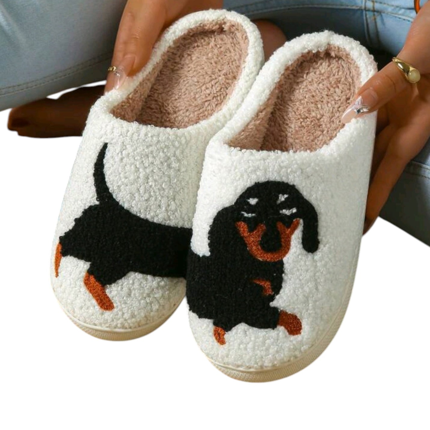 Címke nélküli, fehér, uszkár mintás, zárt orrú, rózsaszín belsővel rendelkező papucs. Belső talp hossz: 24cm