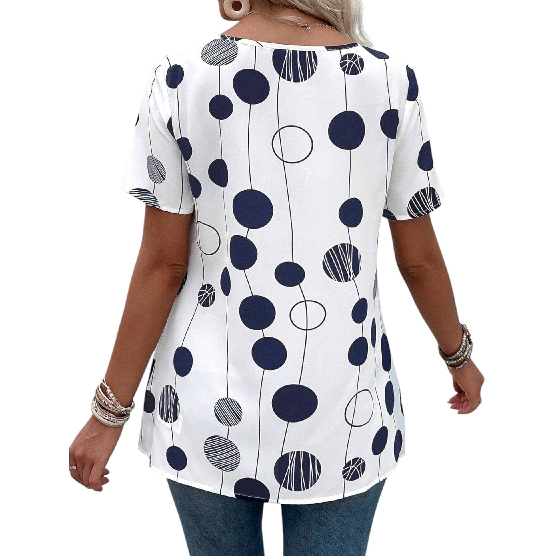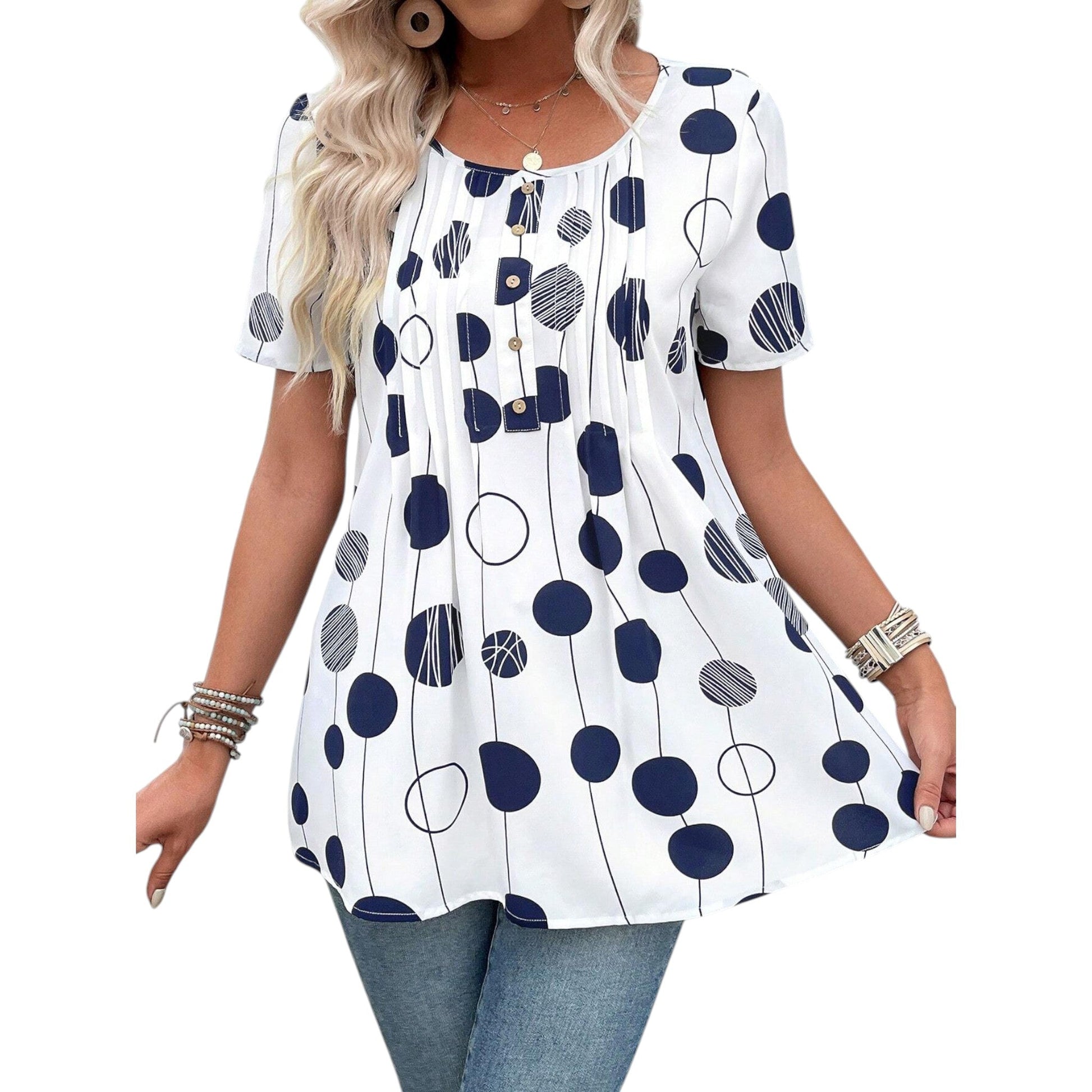 Címke nélküli, fehér, kerek nyakú, rövid ujjú, mintás tunika.