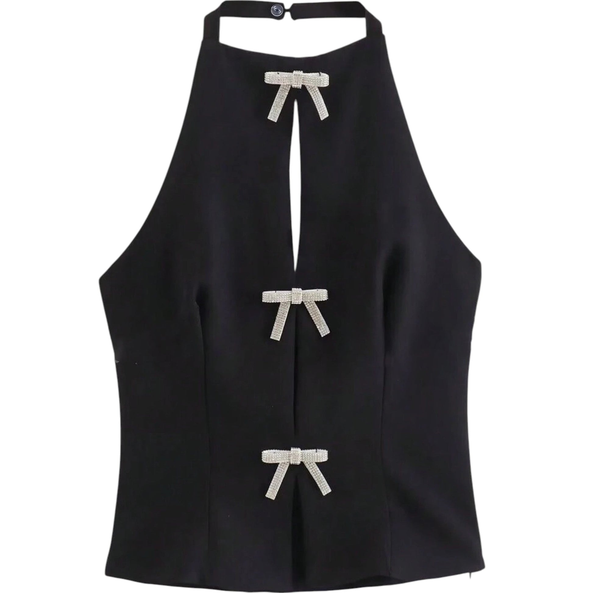 Címke nélküli, fekete, cipzáras, strasszos masni díszítéssel.