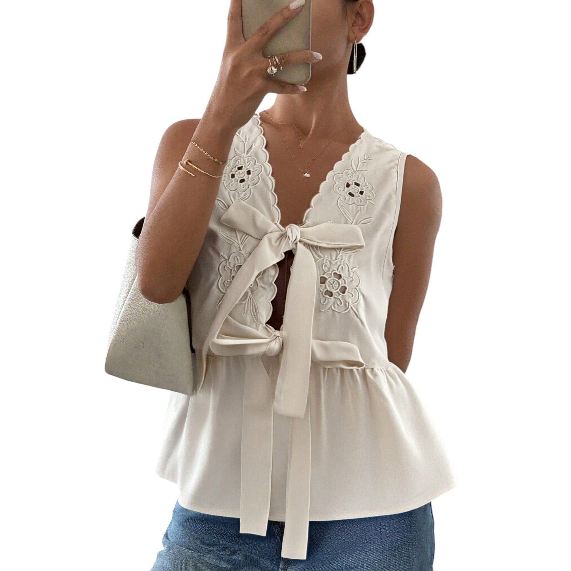 SHE drapp hímzett ujjatlan felső