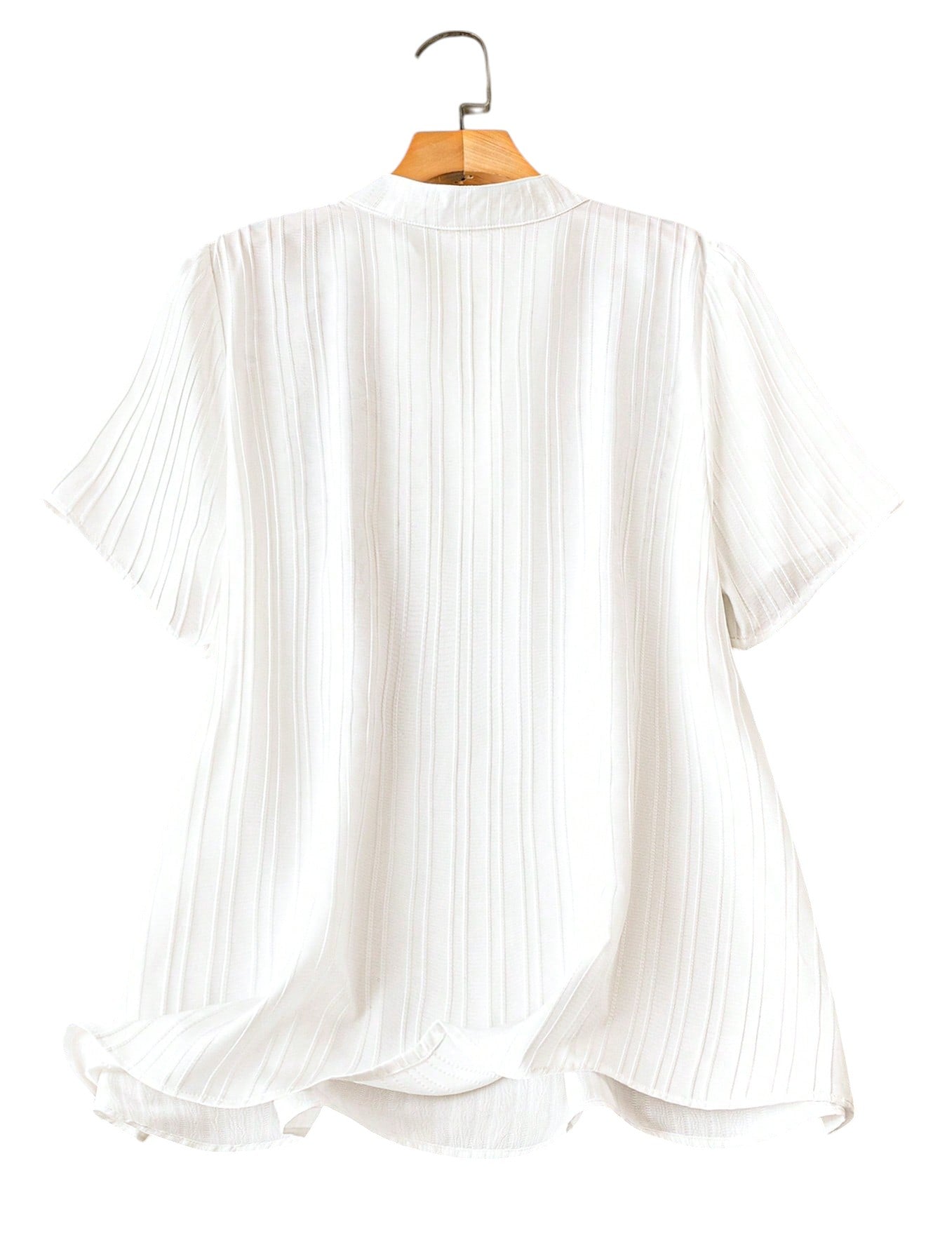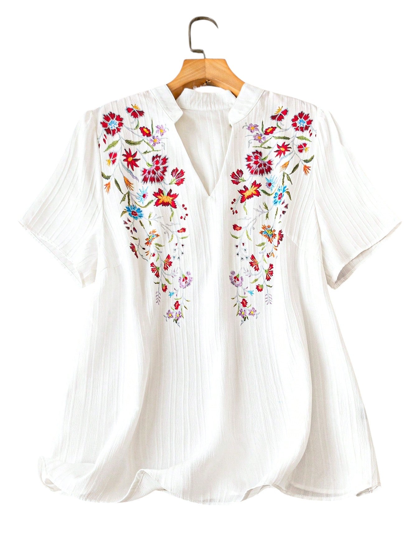 Címke nélküli, fehér, V-nyakú, rövid ujjú, hímzett blúz