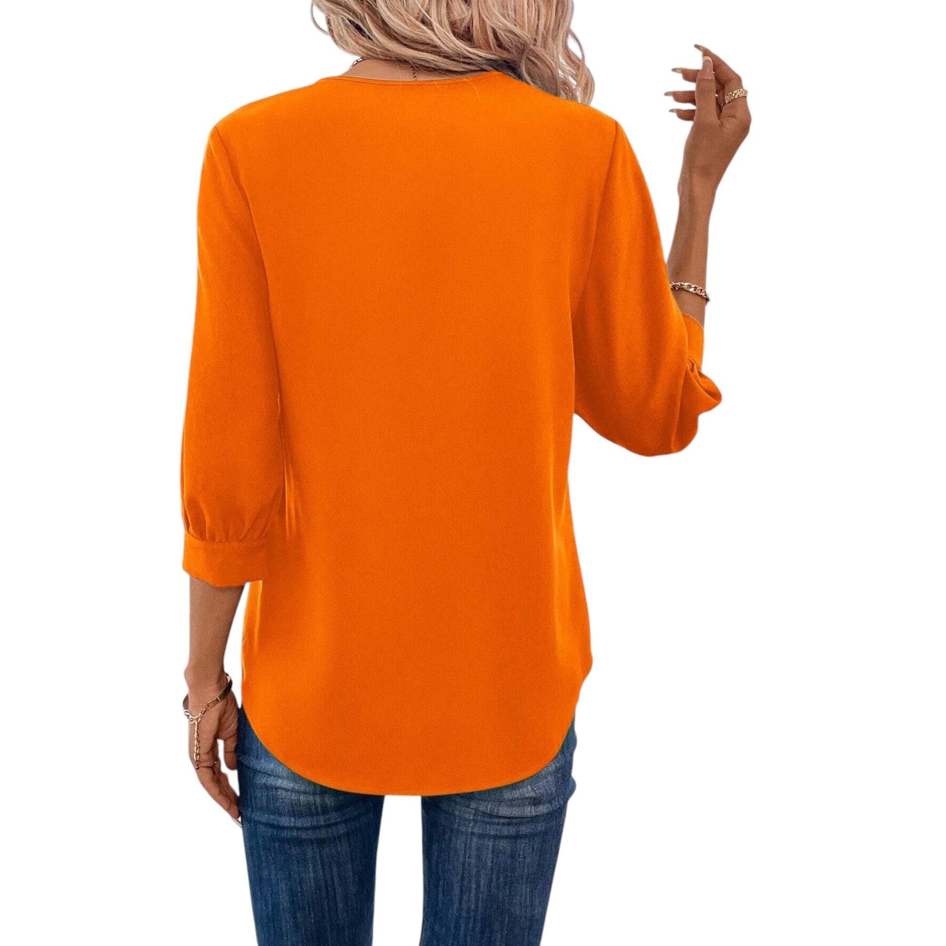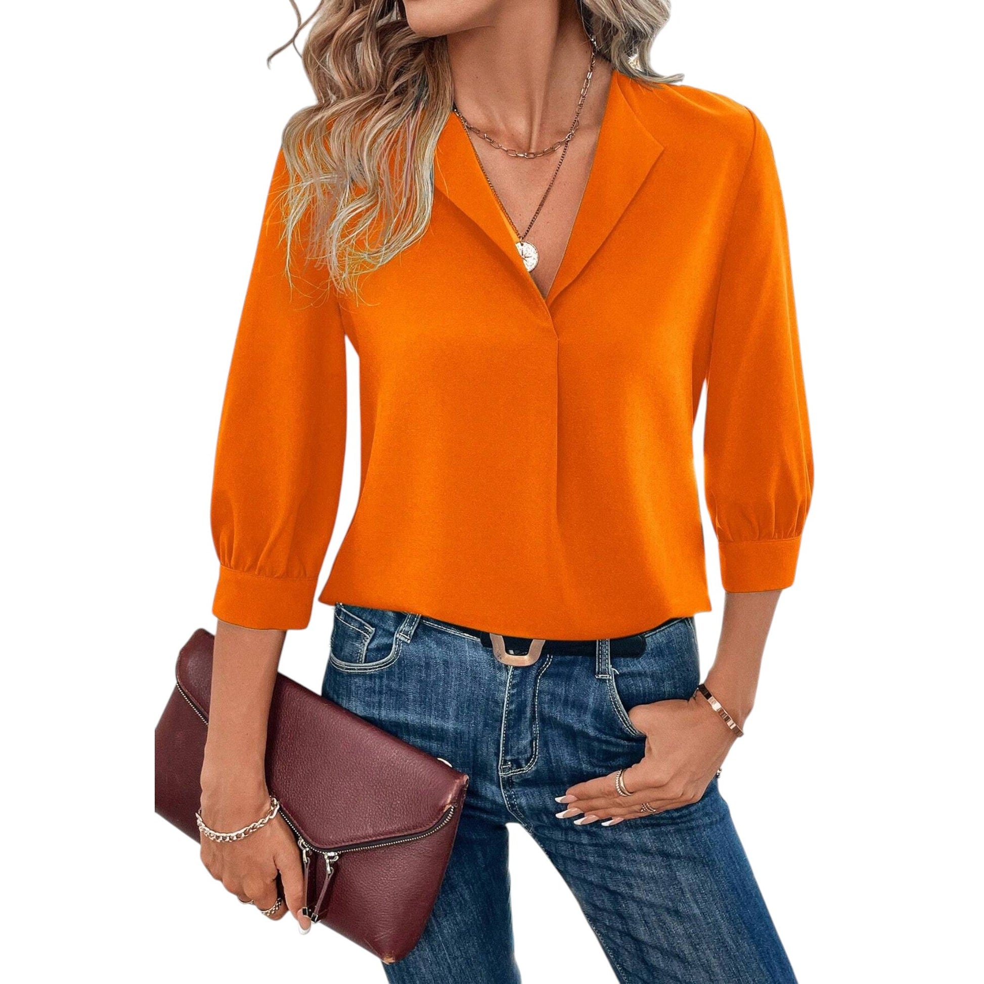 Címke nélküli, narancssárga, V-nyakú, 3/4 ujjú blúz.