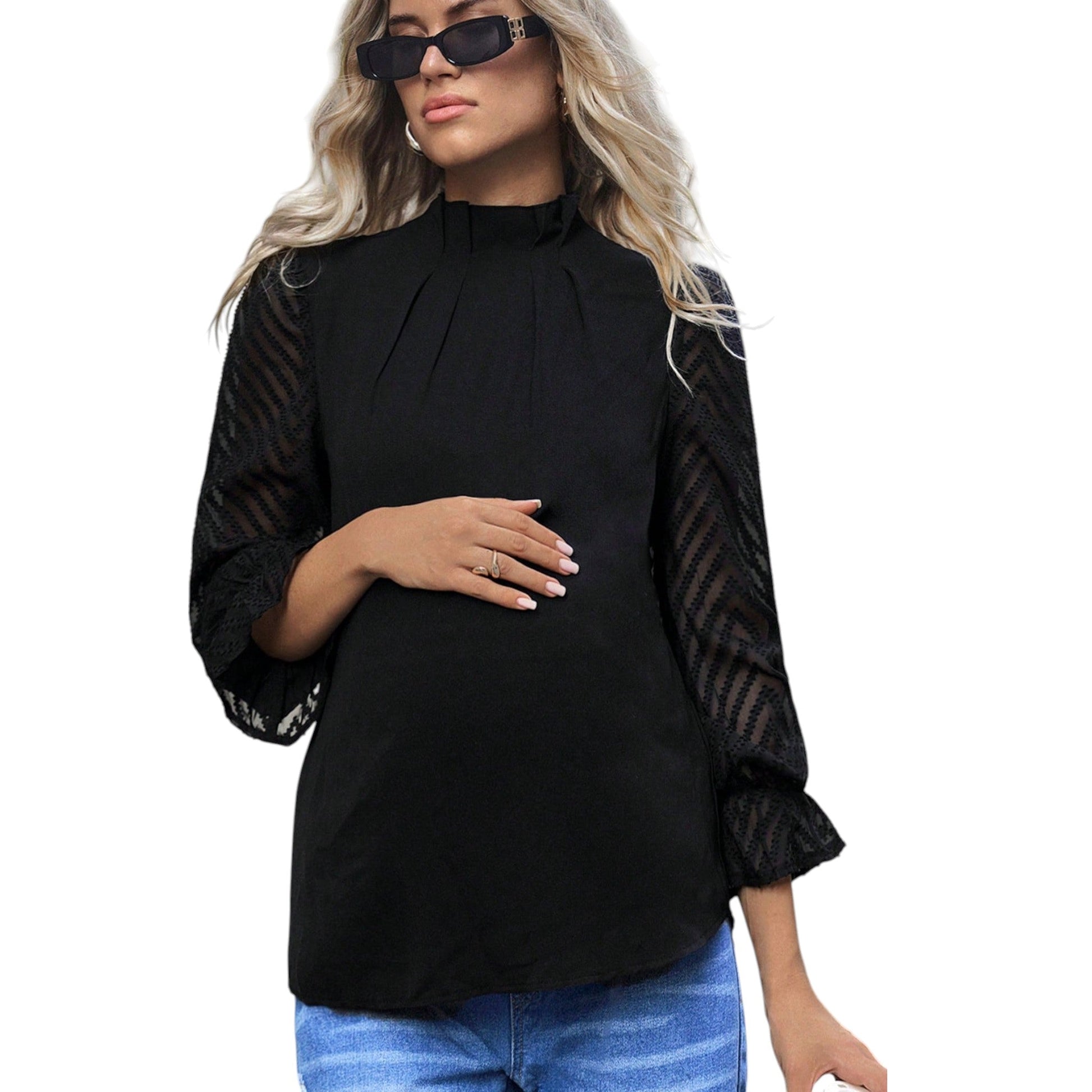 Címke nélküli, fekete, hosszú áttetsző ujjú, garbó nyakú kismama blúz.