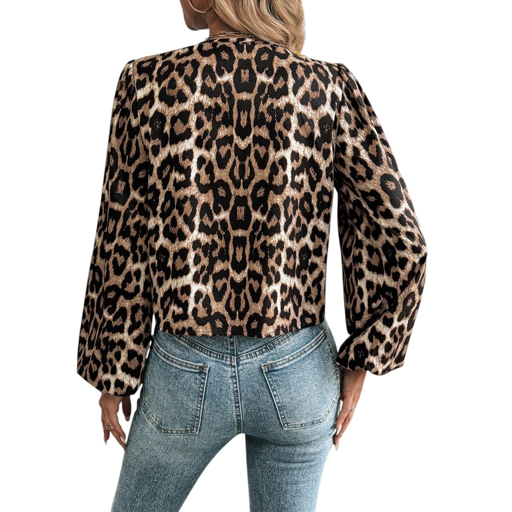Címke nélküli, leopárdmintás, hosszú ujjú, megkötős blúz.