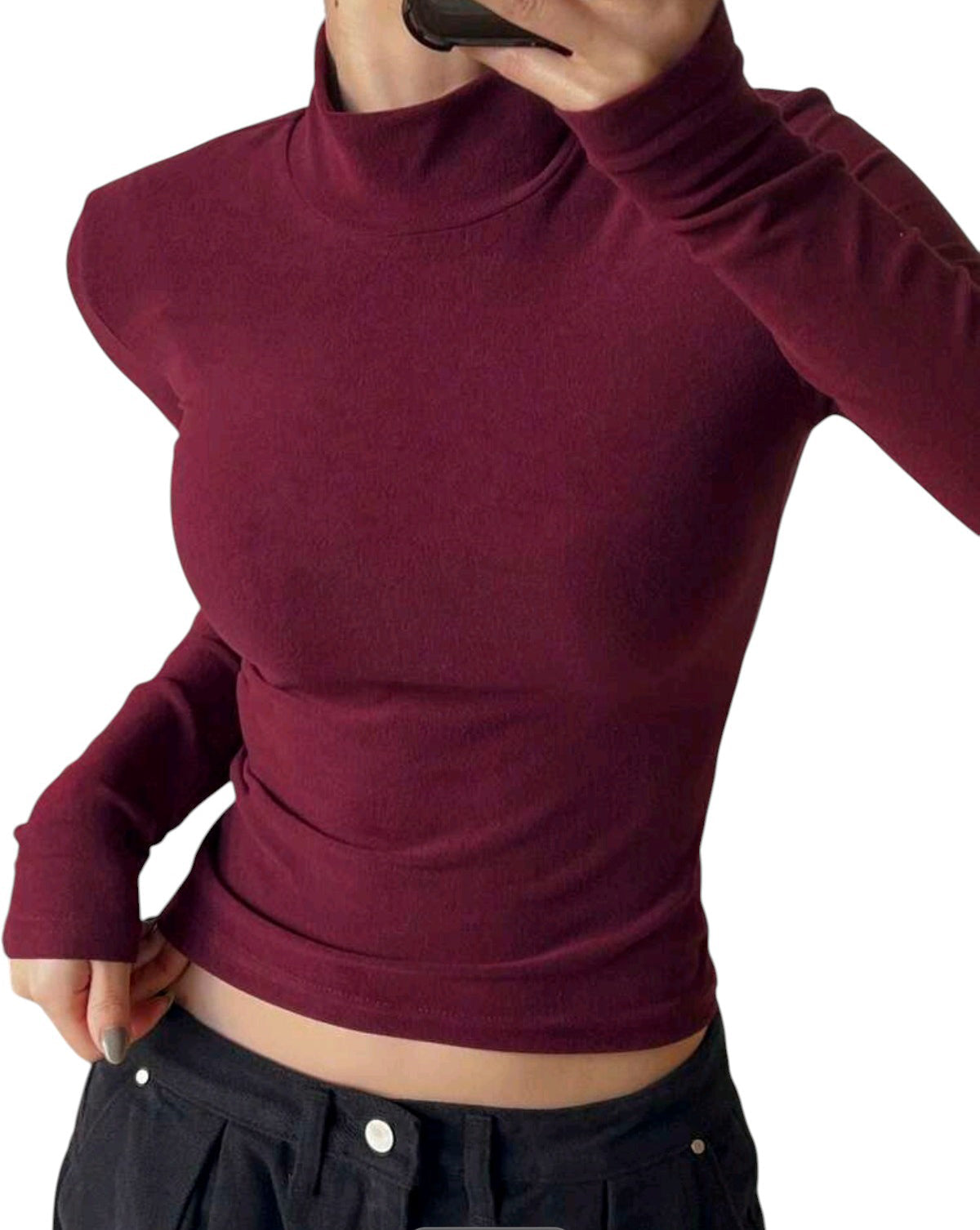 Címke nélküli, bordó, hosszú ujjú, garbós nyakú, crop top