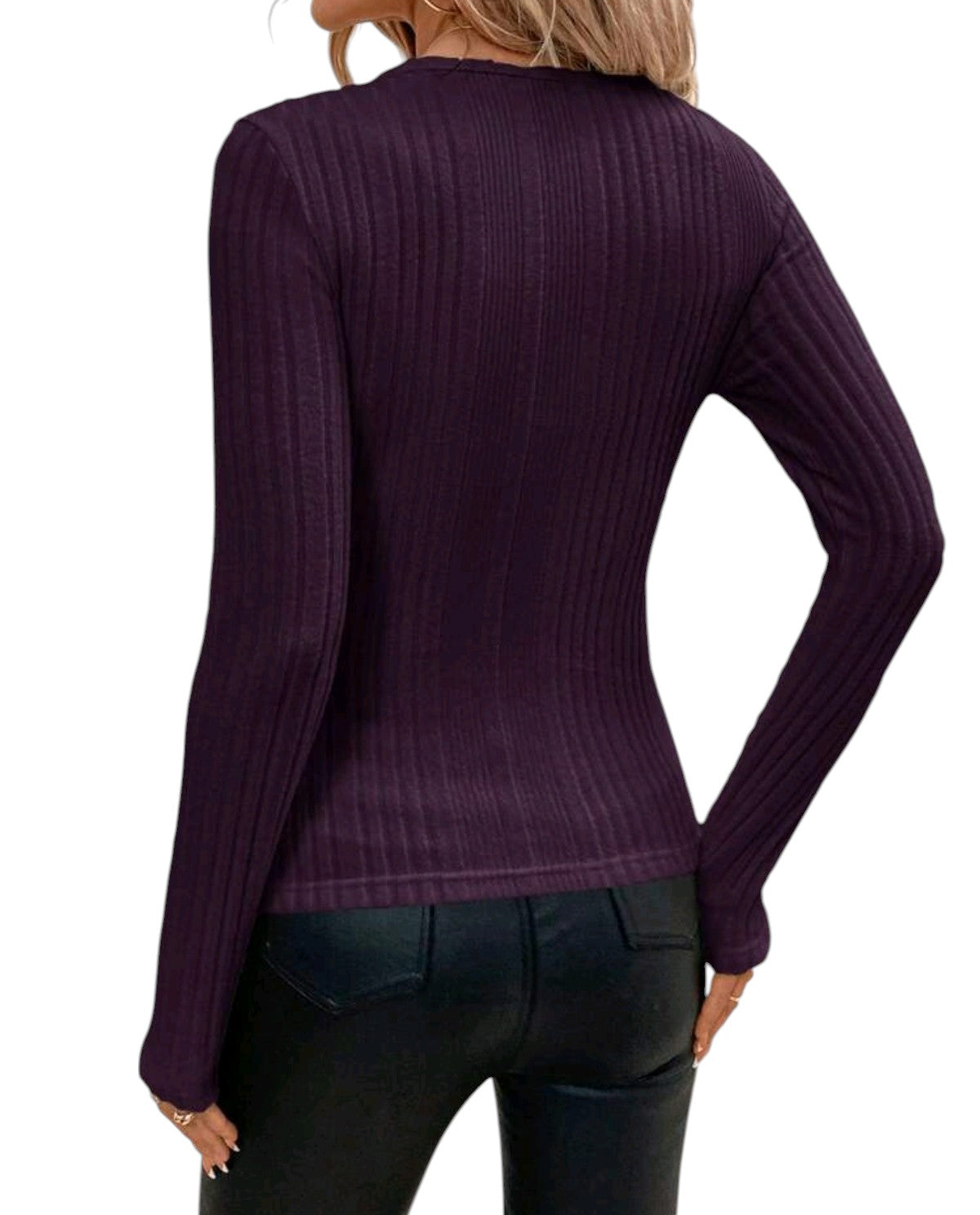 Címke nélküli, sötétlila, hosszú ujjú, V-nyakú, húzott mellrész, bordázott, crop top