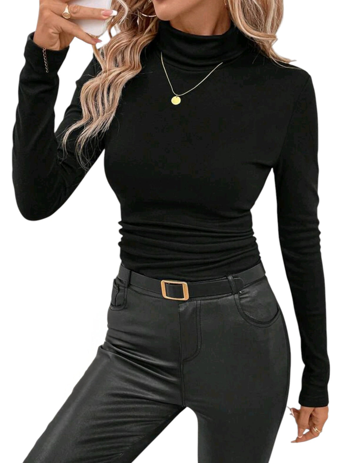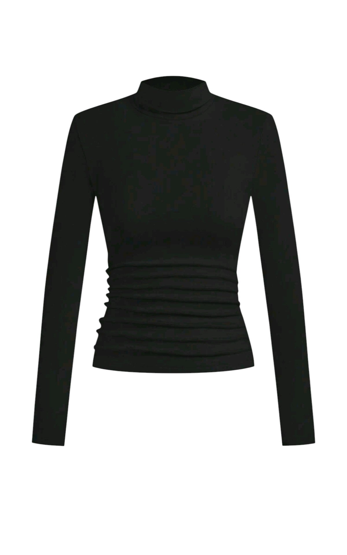 Címke nélküli, fekete, hosszú ujjú, garbós nyakú, felső