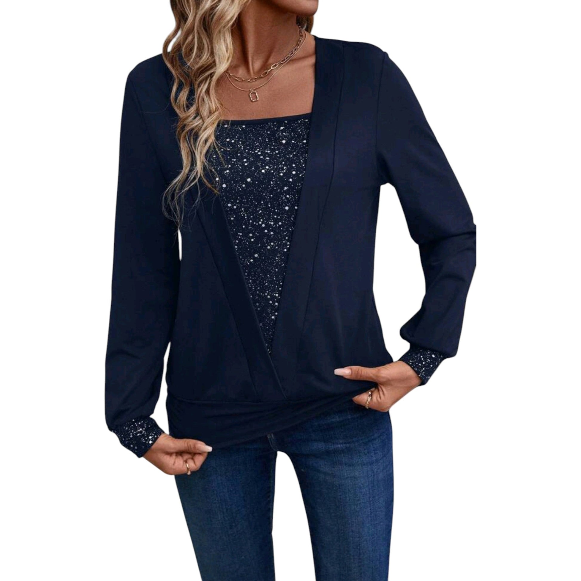 SHE sötétkék flitteres hosszú ujjú felső