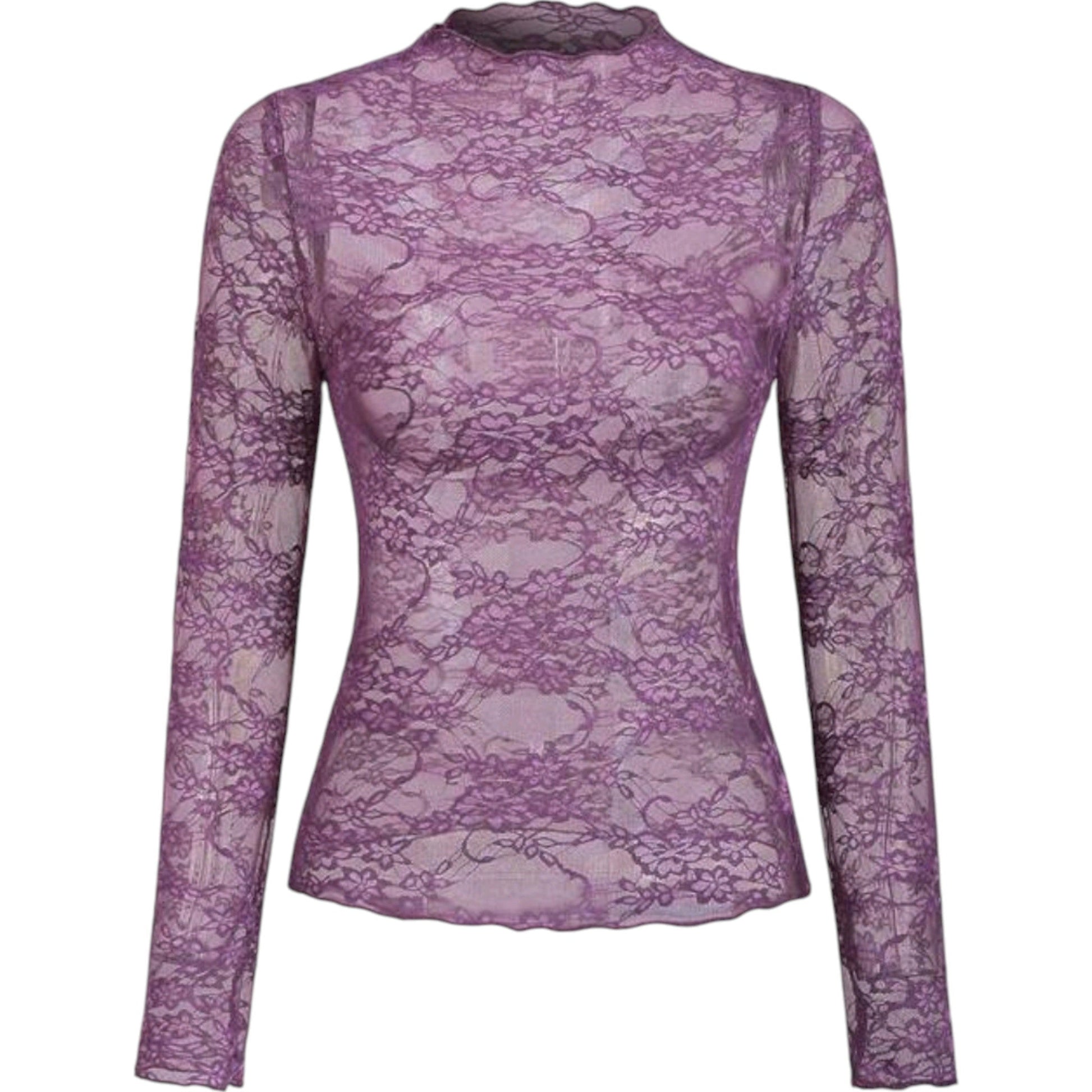 SHE lila csipkés, magas nyakú hosszú ujjú felső