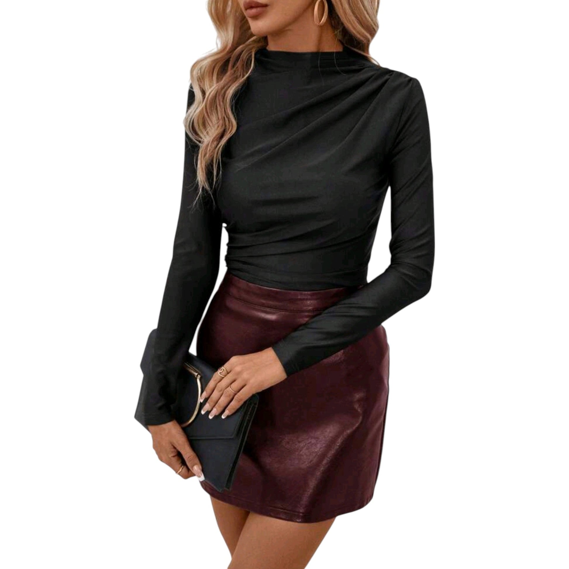 SHE fekete ráncolt, magas nyakú hosszú ujjú felső