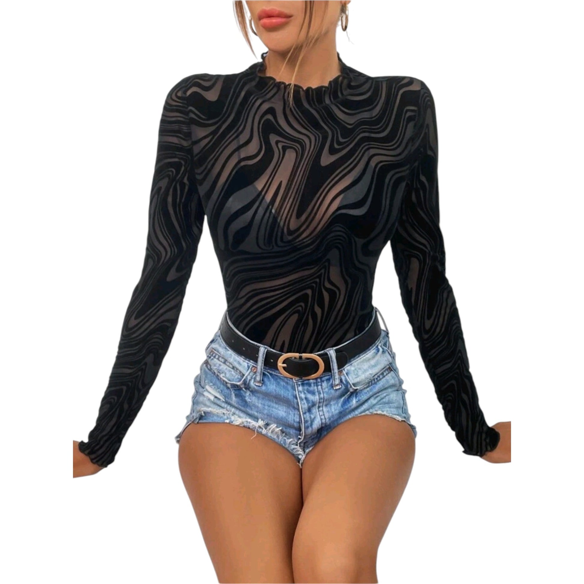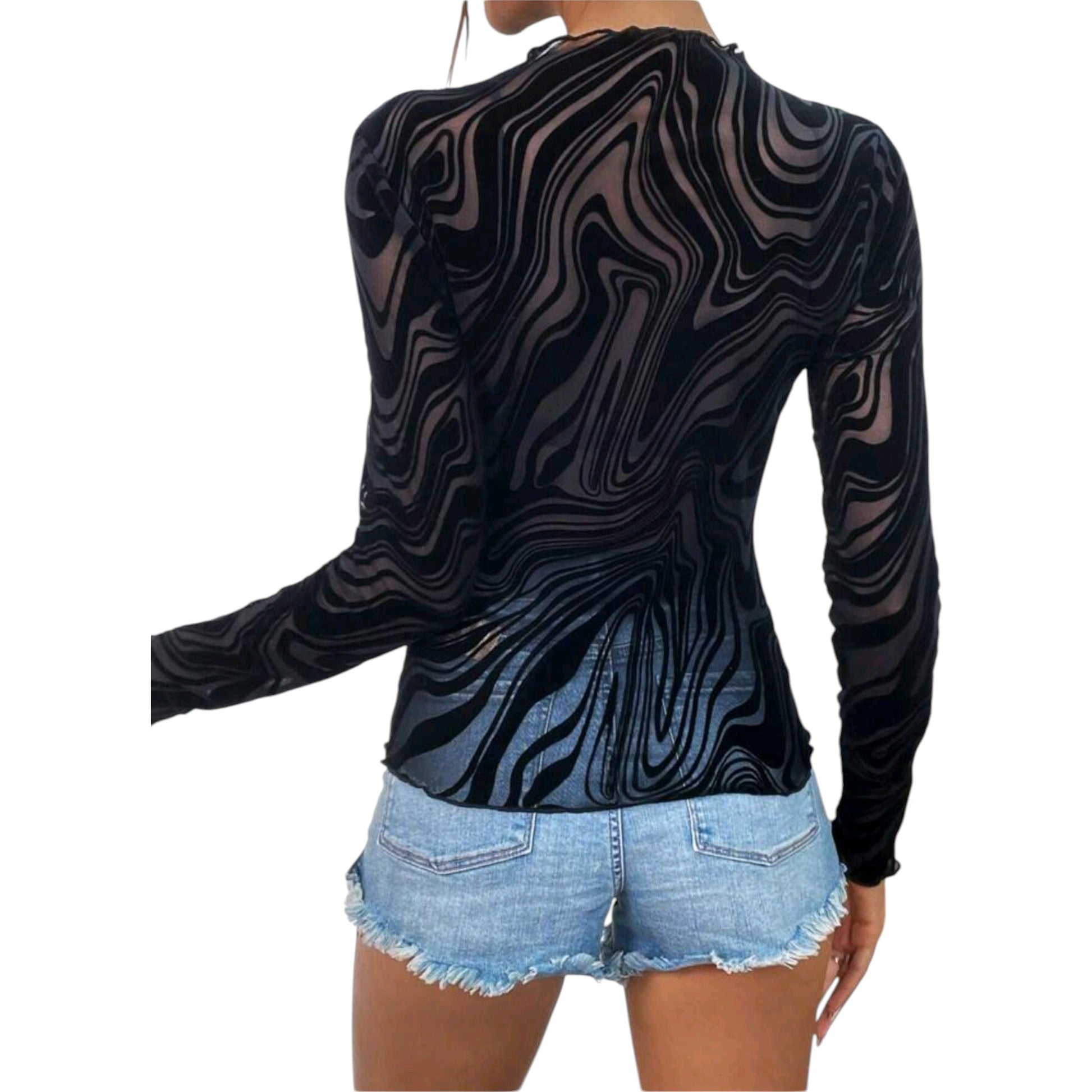 Címke nélküli, fekete, átlátszó, hosszú ujjú, hullámos mintás