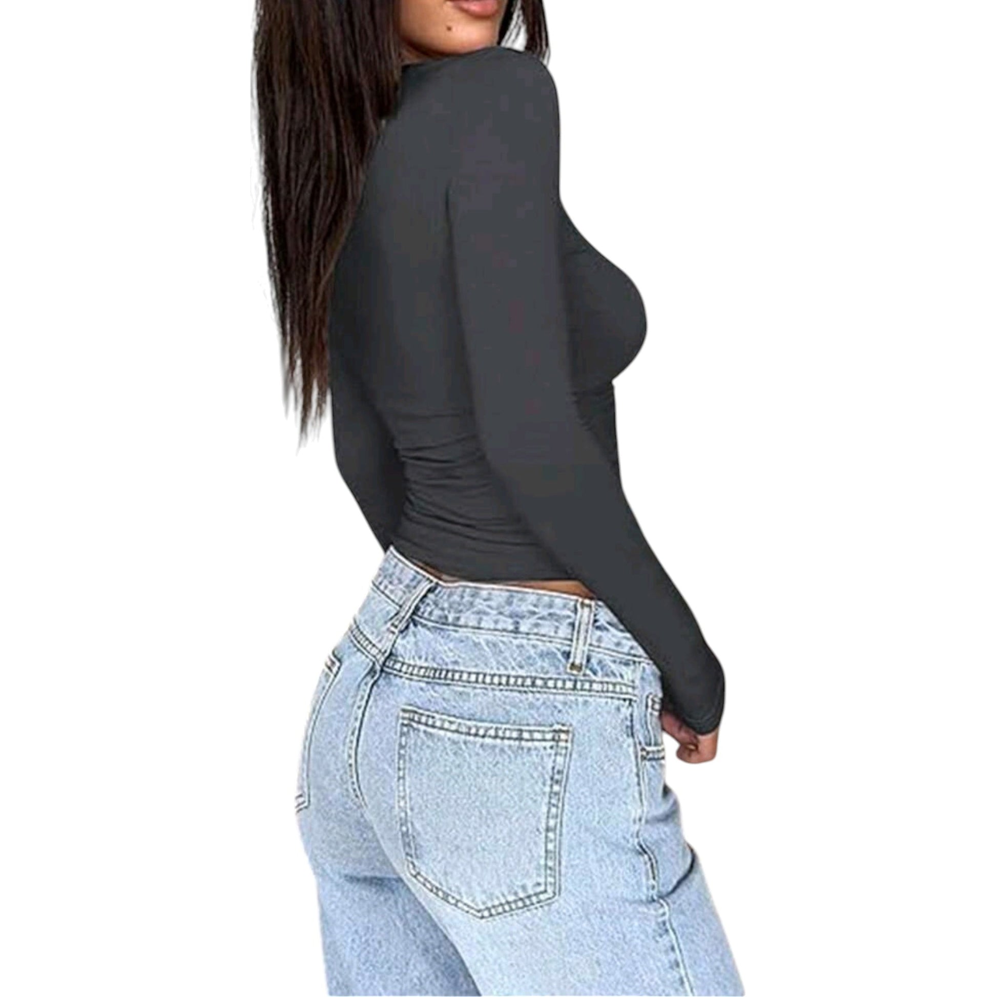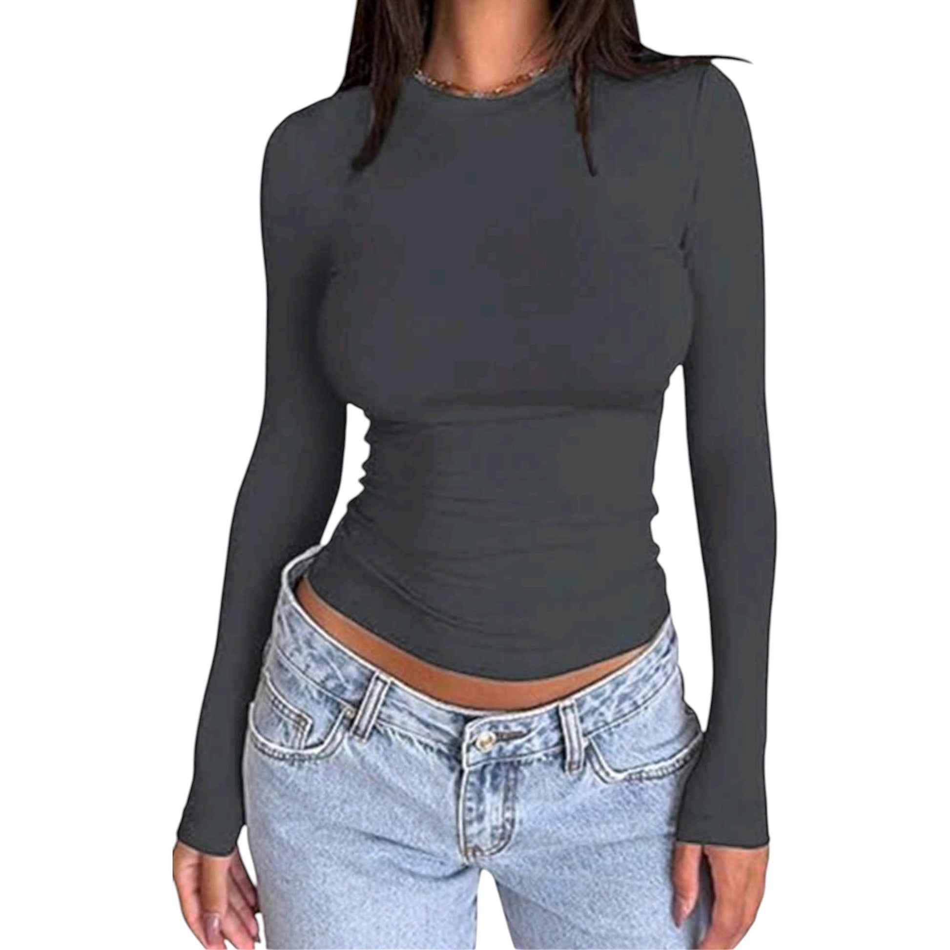 Címke nélküli, szürke, hosszú ujjú, slim fit, crop top