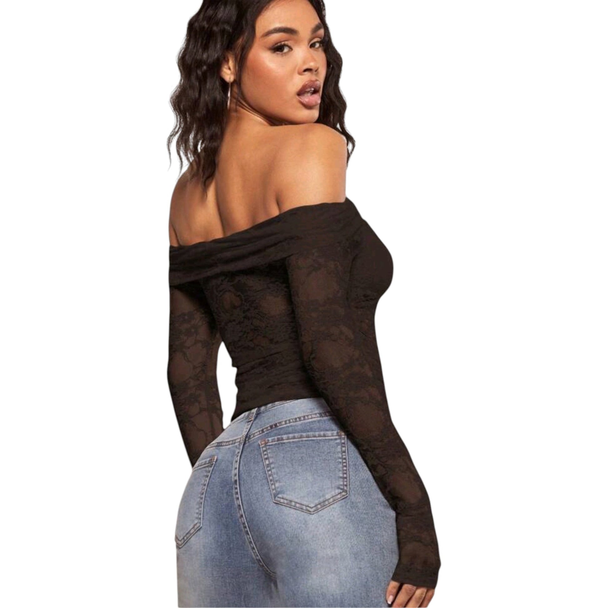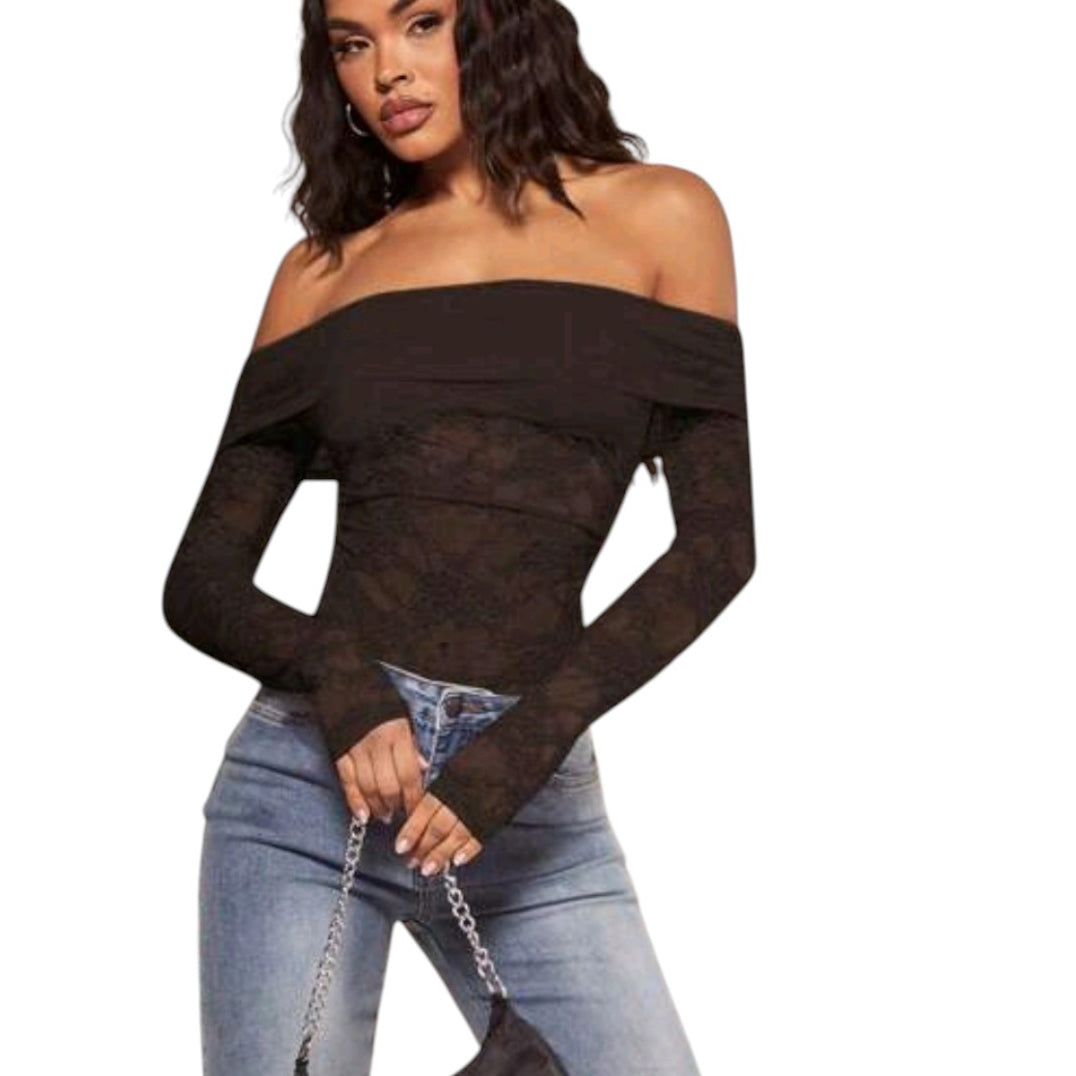 Címke nélküli, fekete, hosszú ujjú, csipkés, váll nélküli, áttetsző