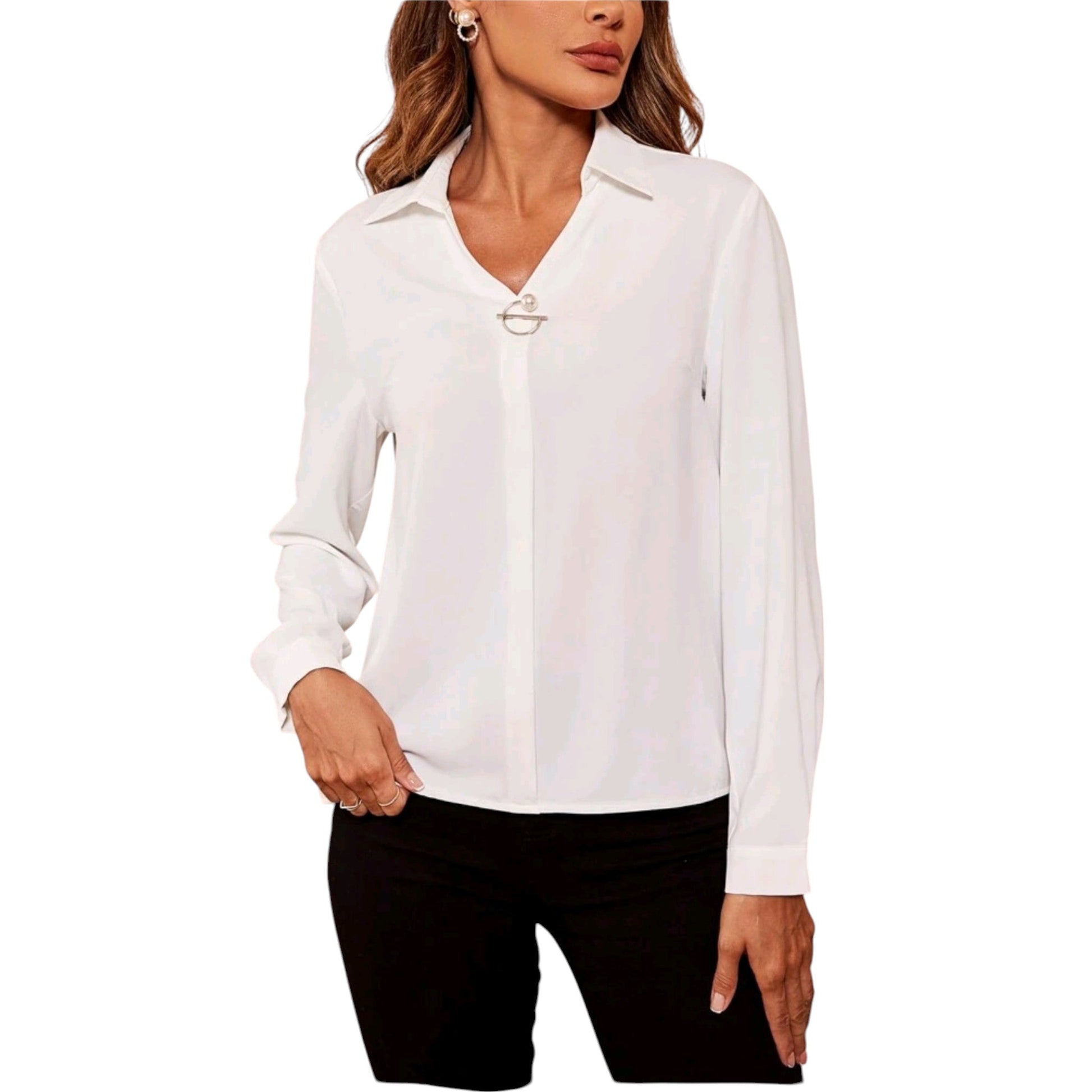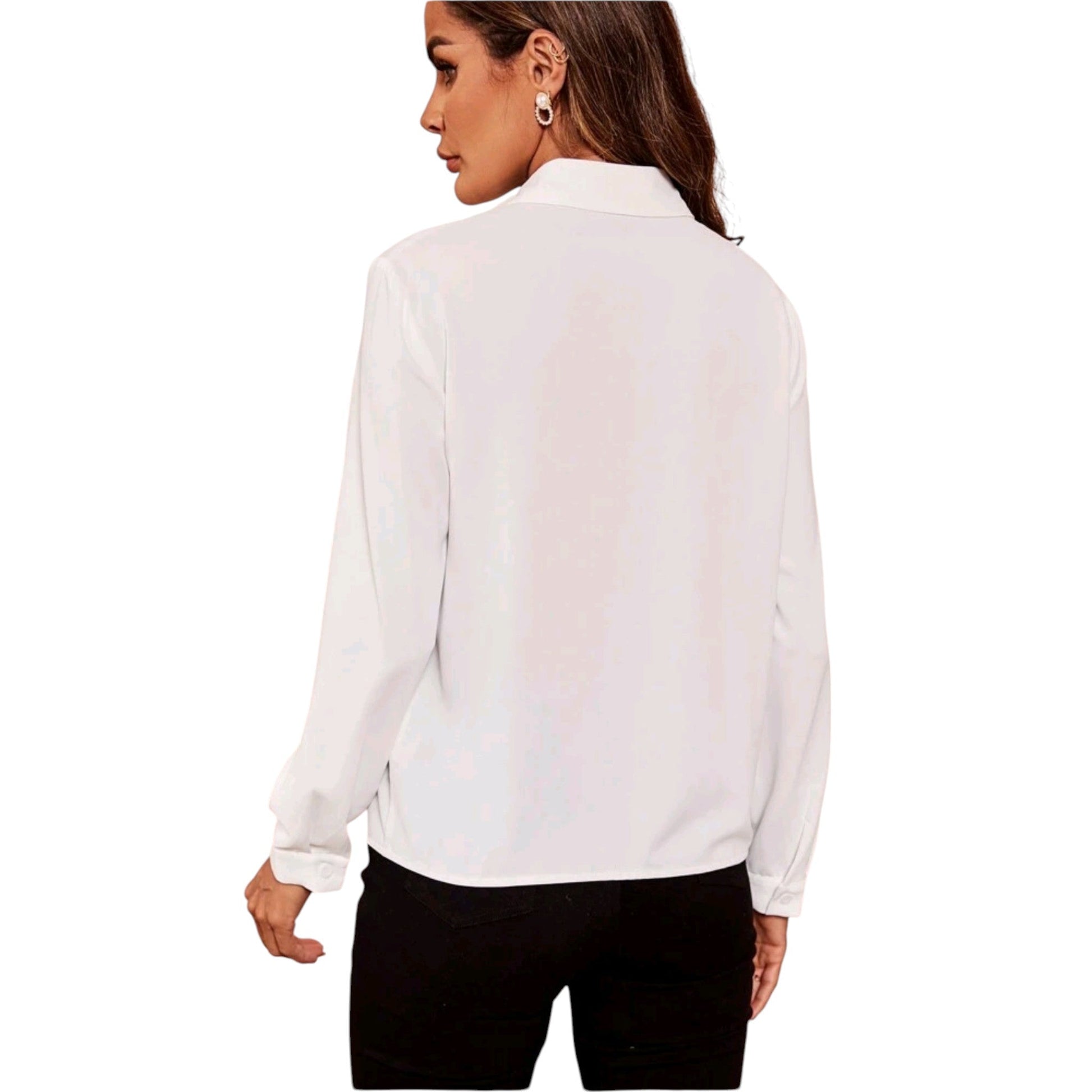 Címke nélküli, fehér, hosszú ujjú blúz, gombos elől.