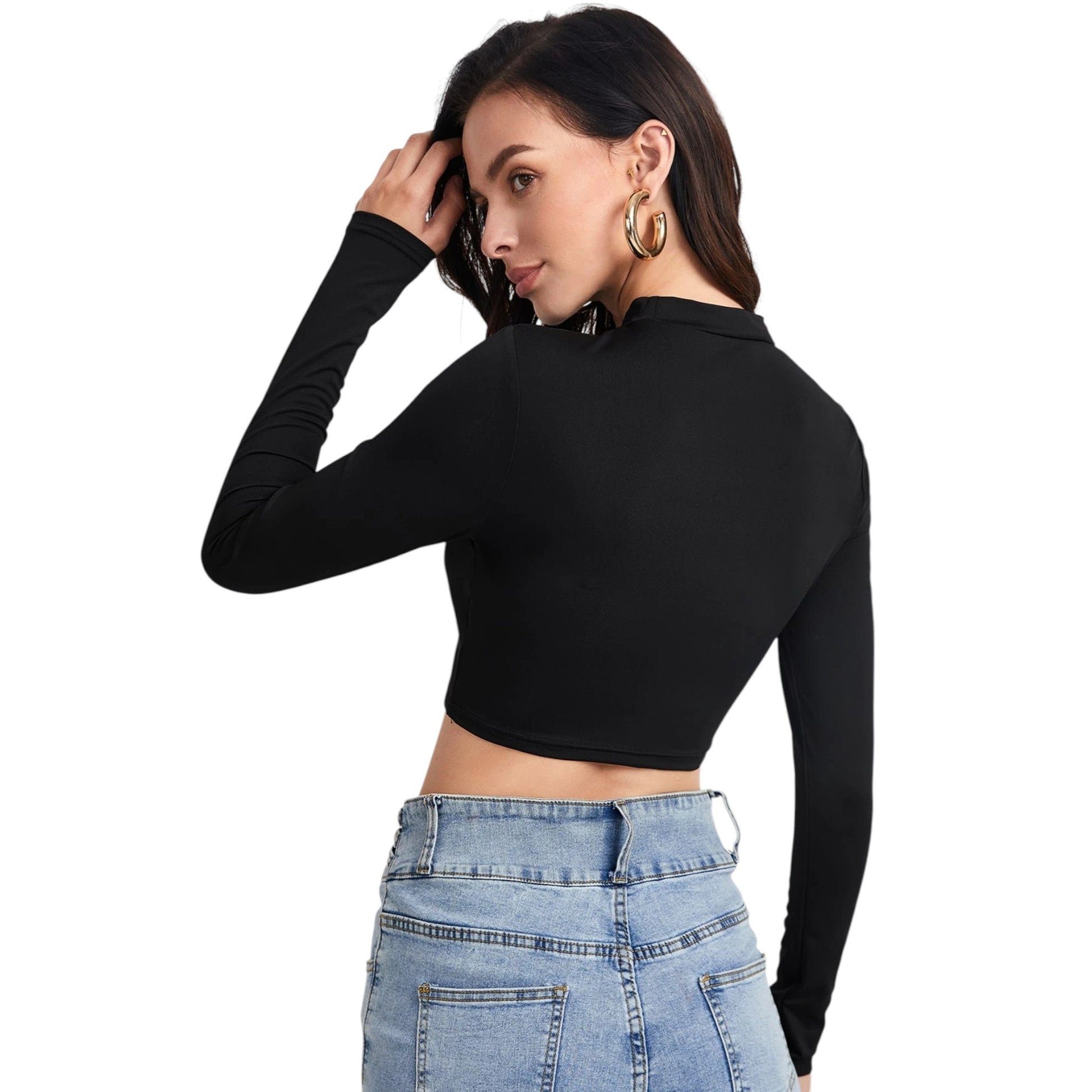Címke nélküli, fekete, magas nyakú, hosszú ujjú, crop fazonú.