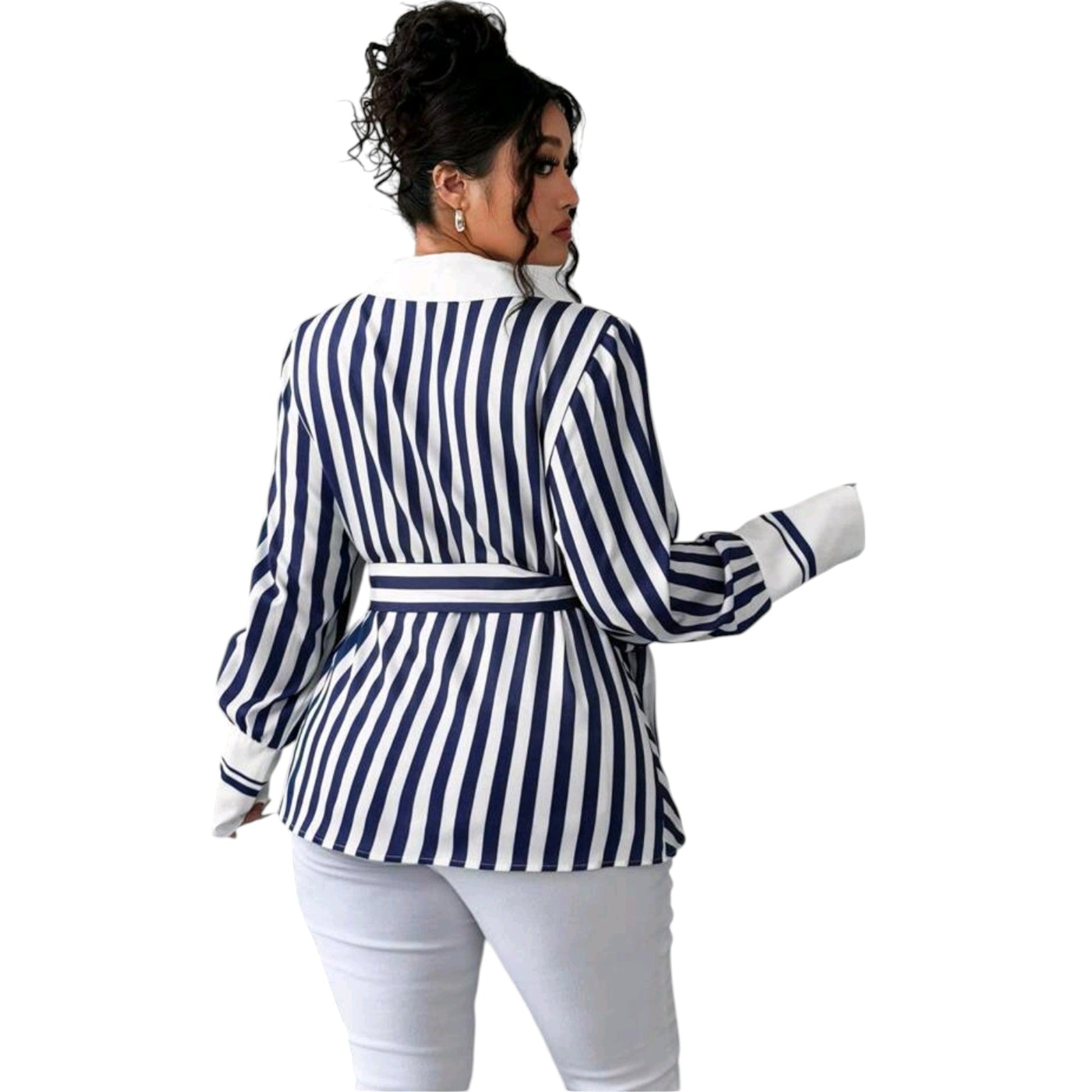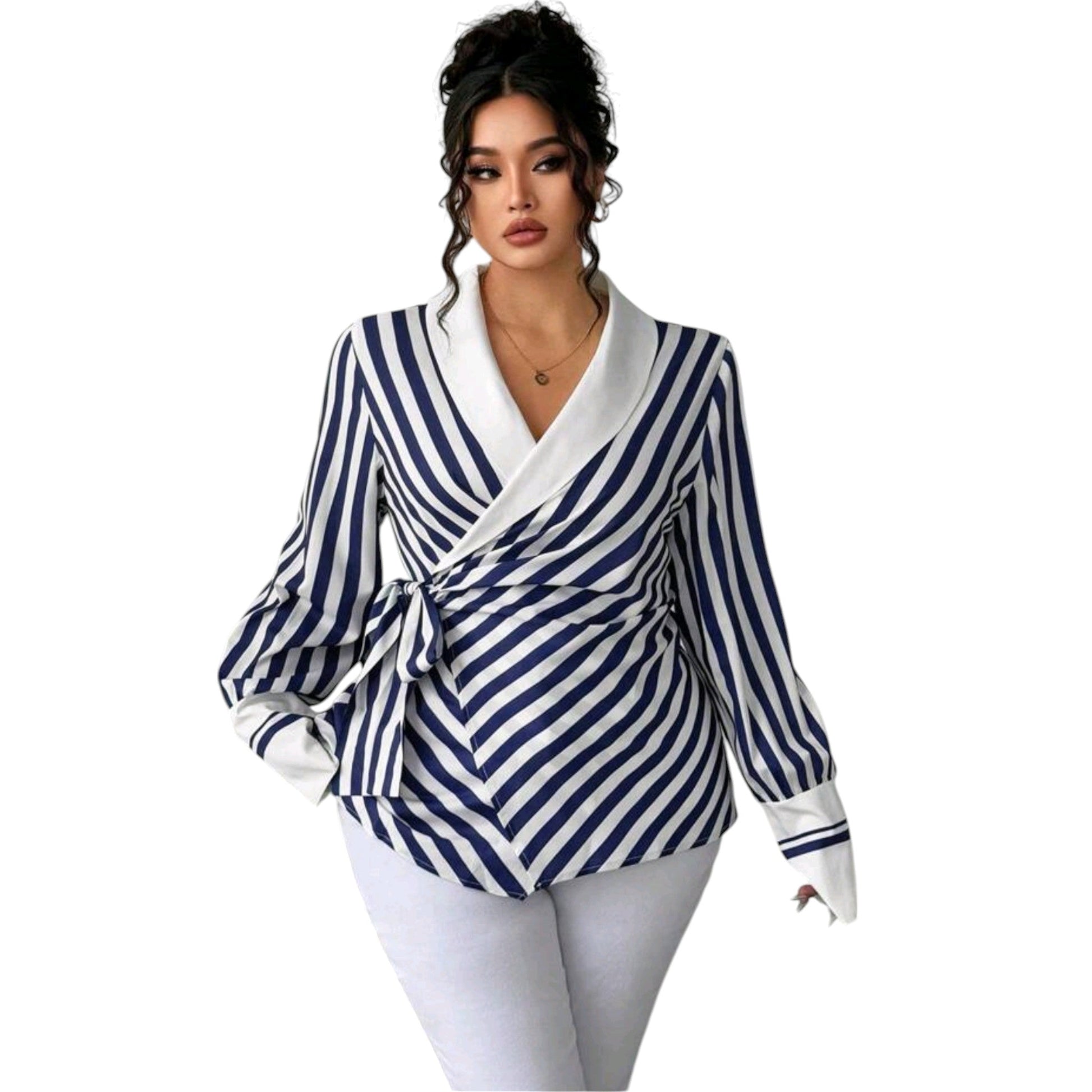 Címke nélküli, csíkos, hosszú ujjú, galléros, átlapolt fazonú, megkötős.
