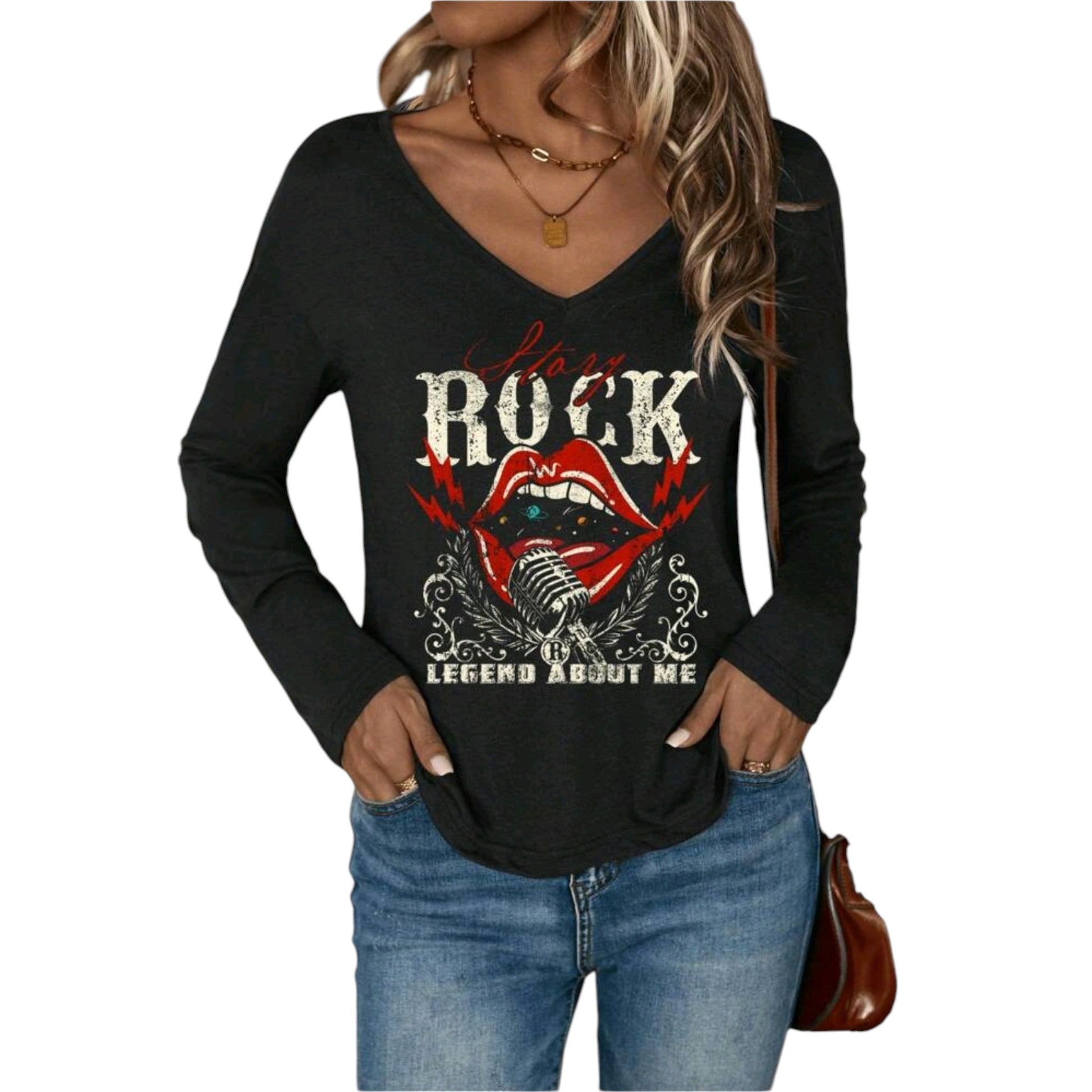 Címke nélküli, fekete, mintás, V-nyakú, hosszú ujjú.