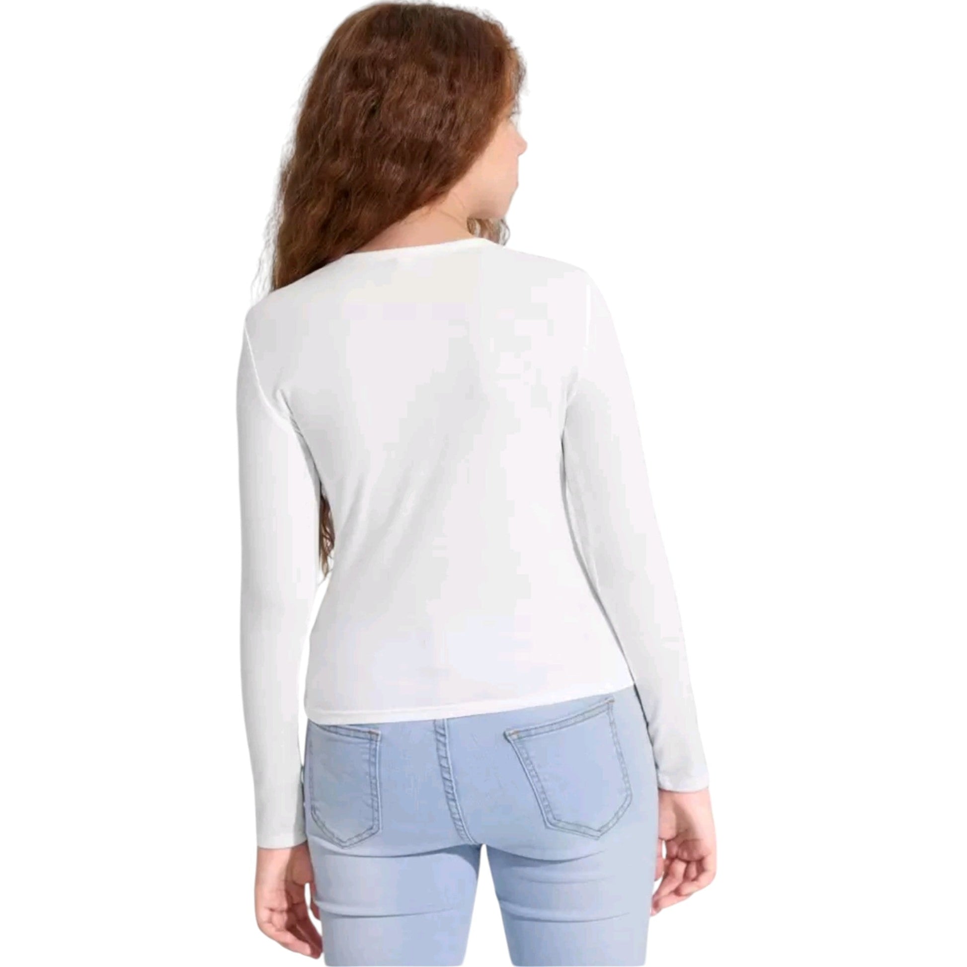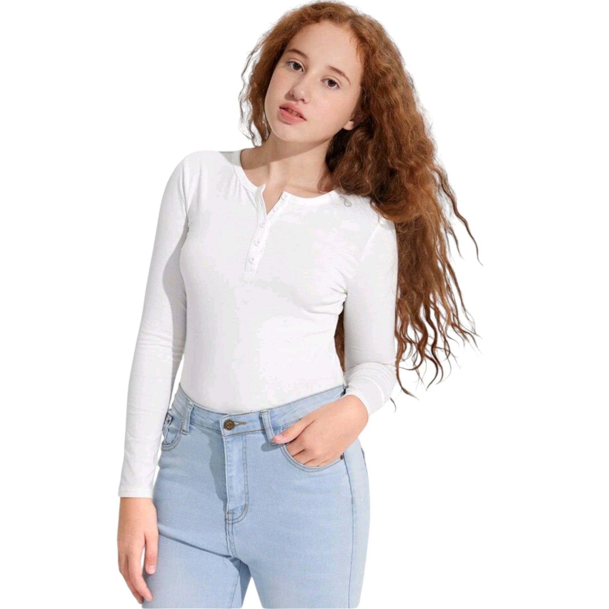 Címke nélküli, fehér, hosszú ujjú, gombos, kerek nyakú.