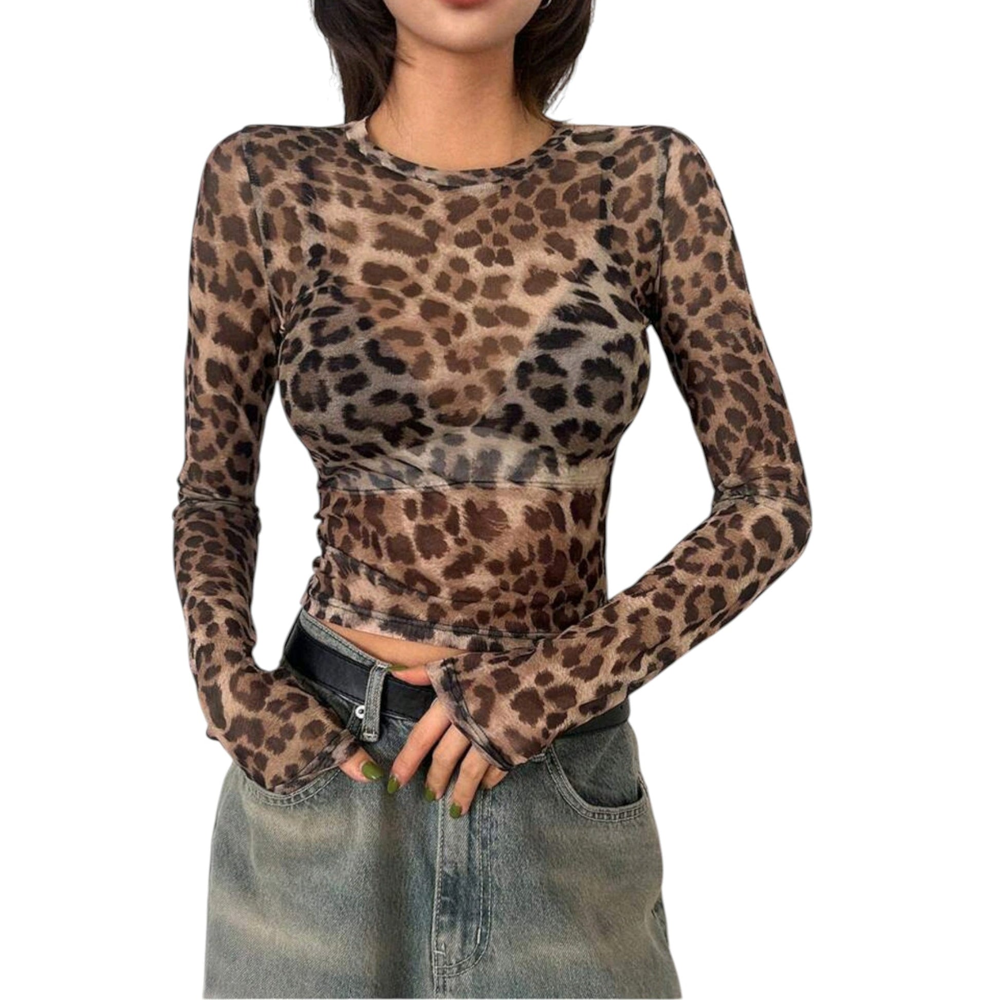 Címke nélküli, barna, leopárd mintás, hosszú ujjú, áttetsző anyagú.
