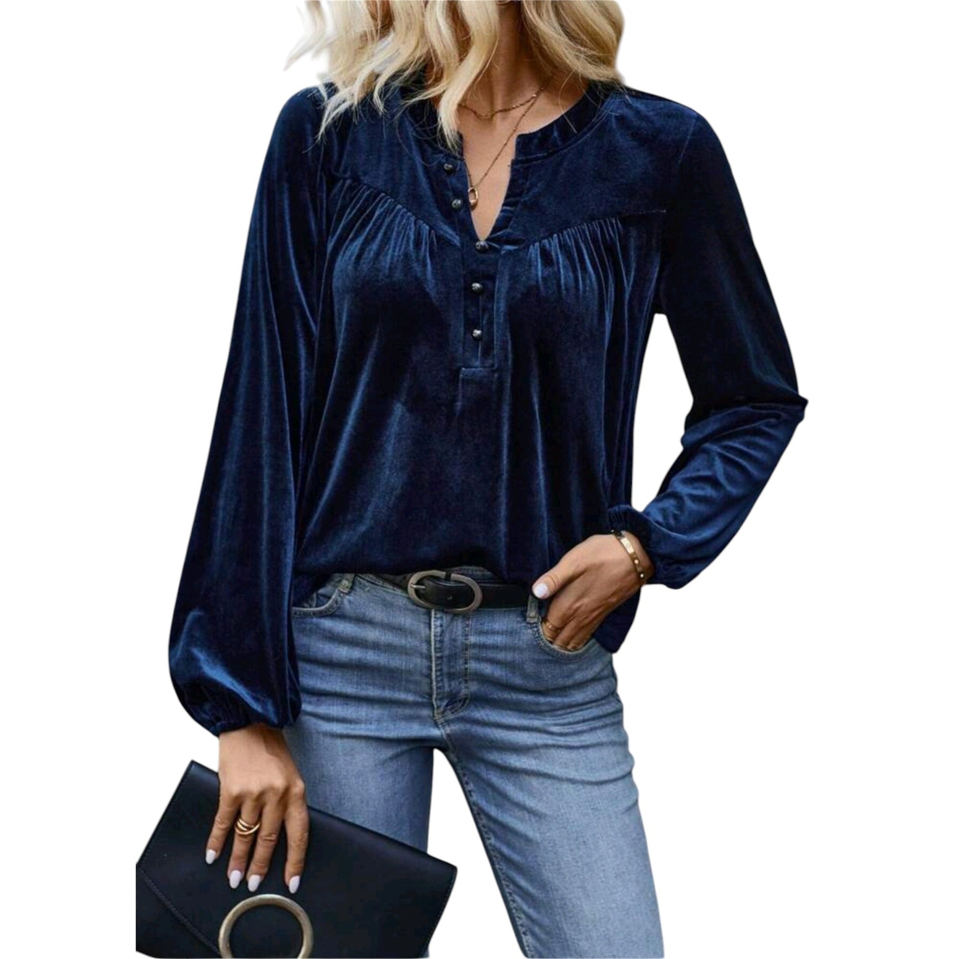SHE kék bársony blúz