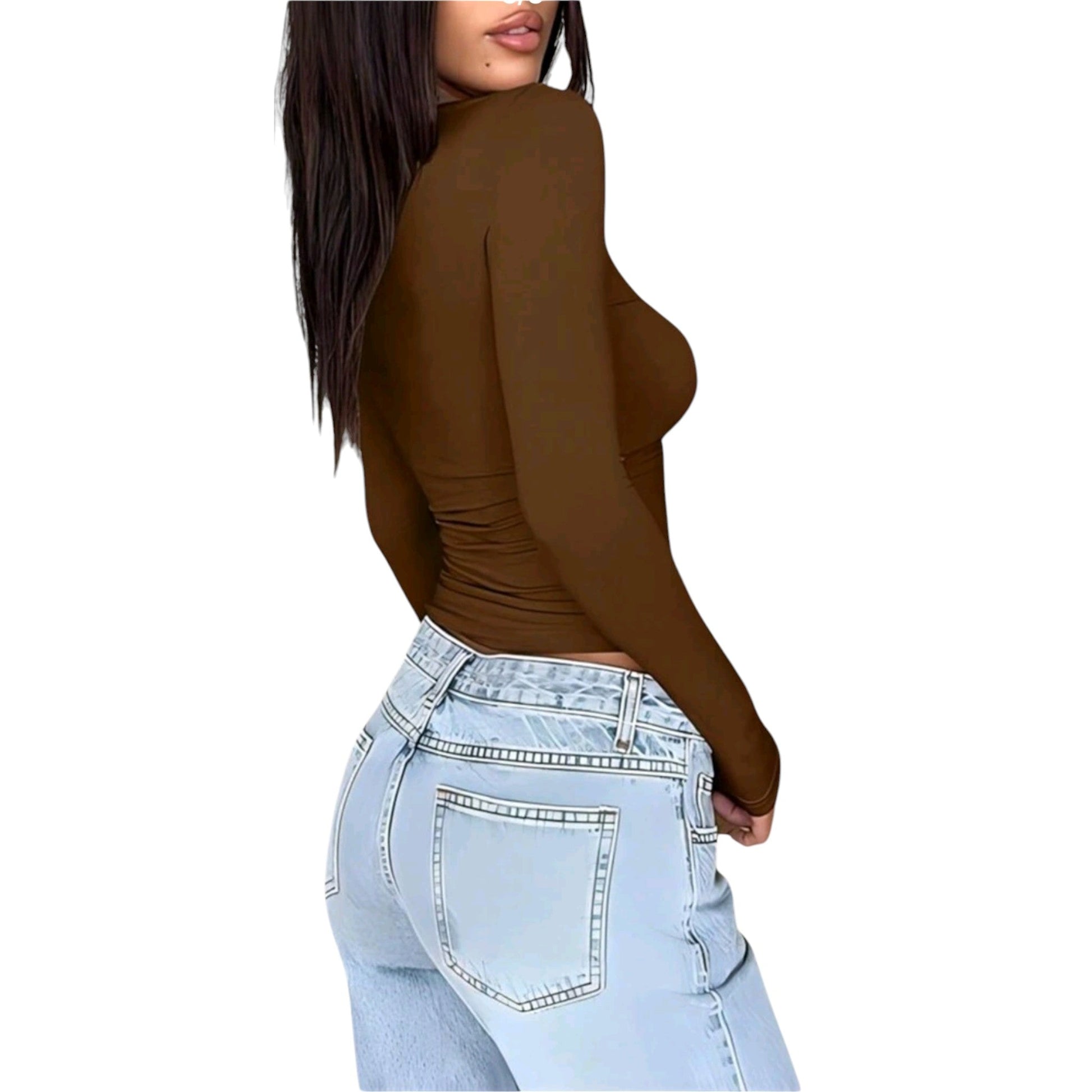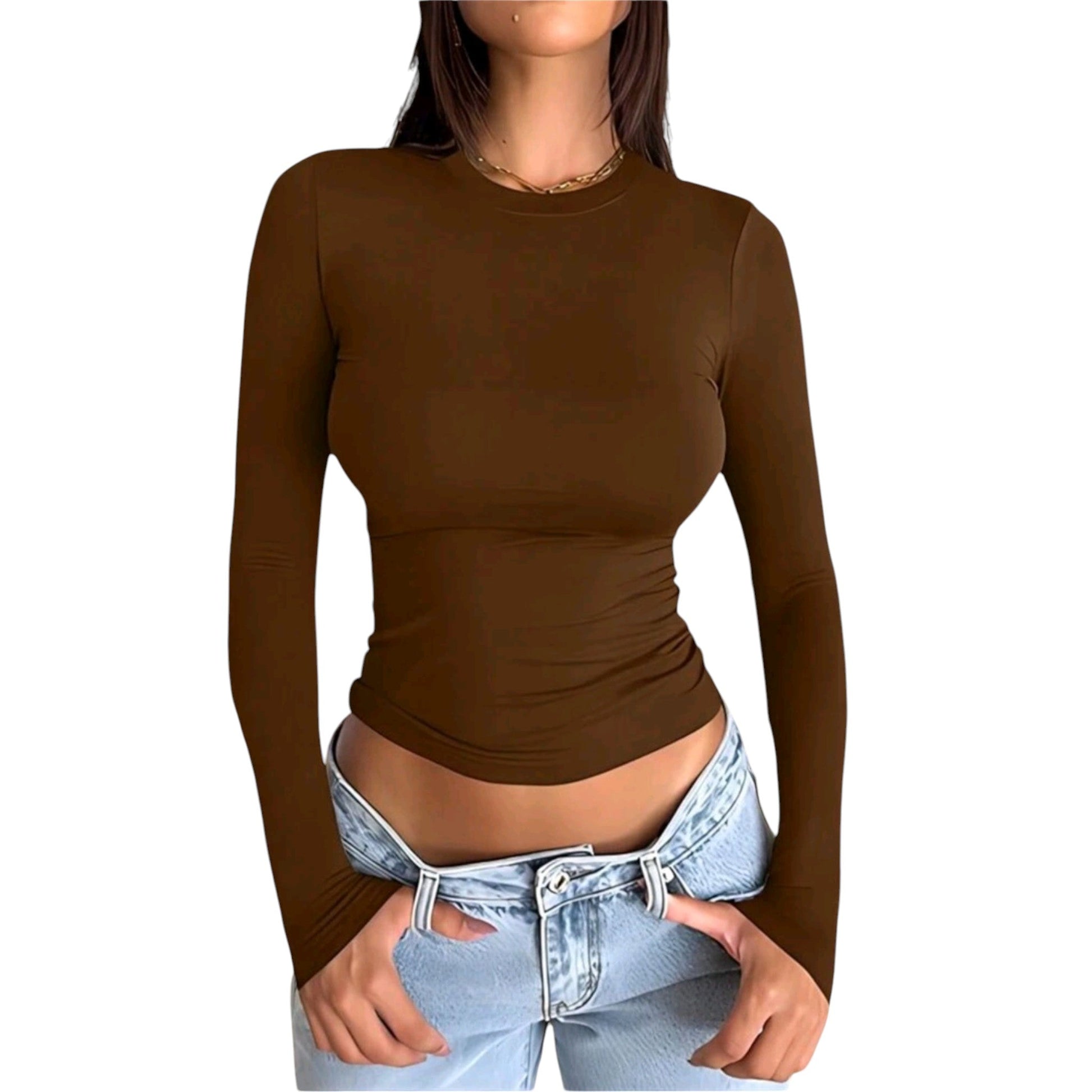 Címke nélküli, barna, hosszú ujjú, testhezálló, kerek nyakú.