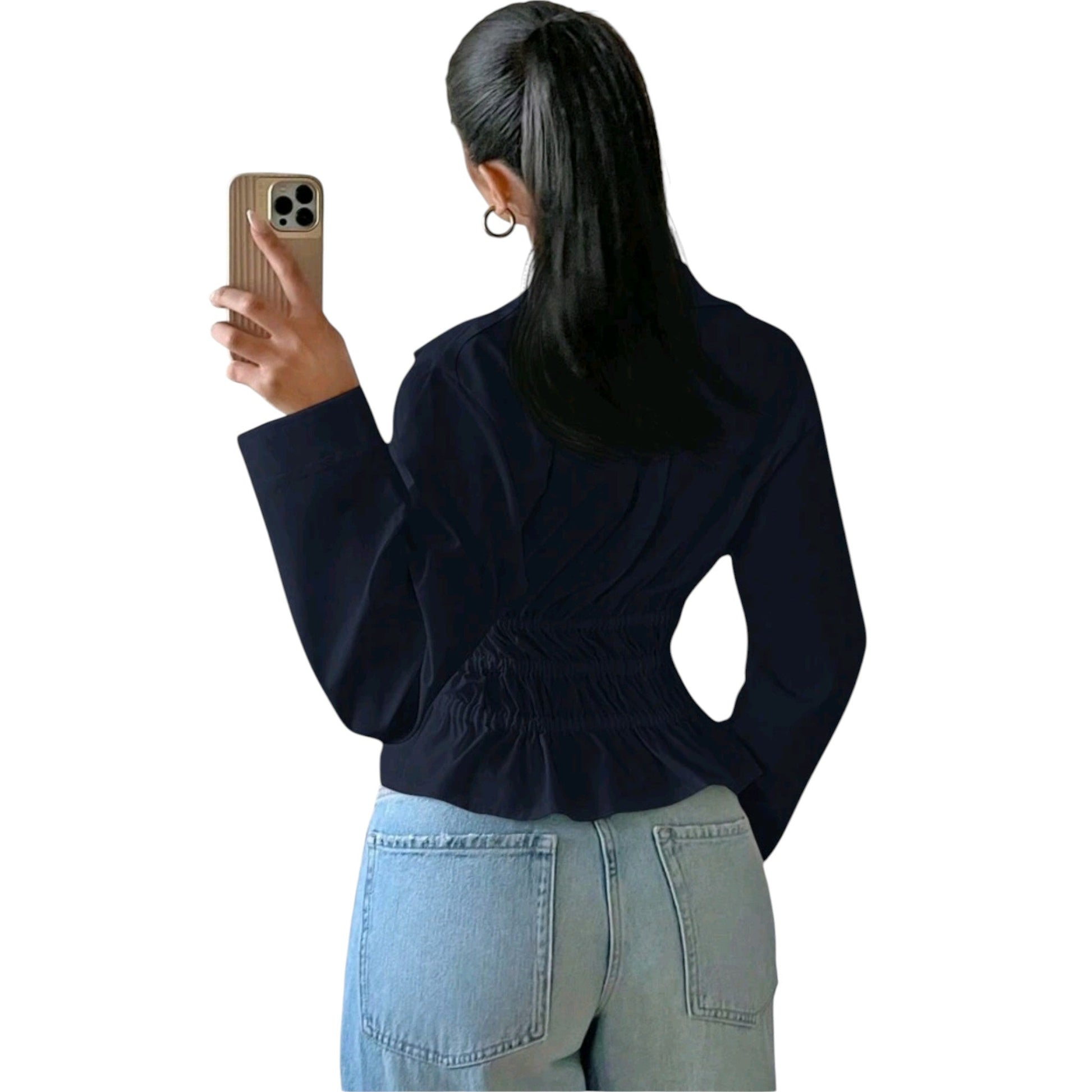 SHE fekete húzott derekú blúz