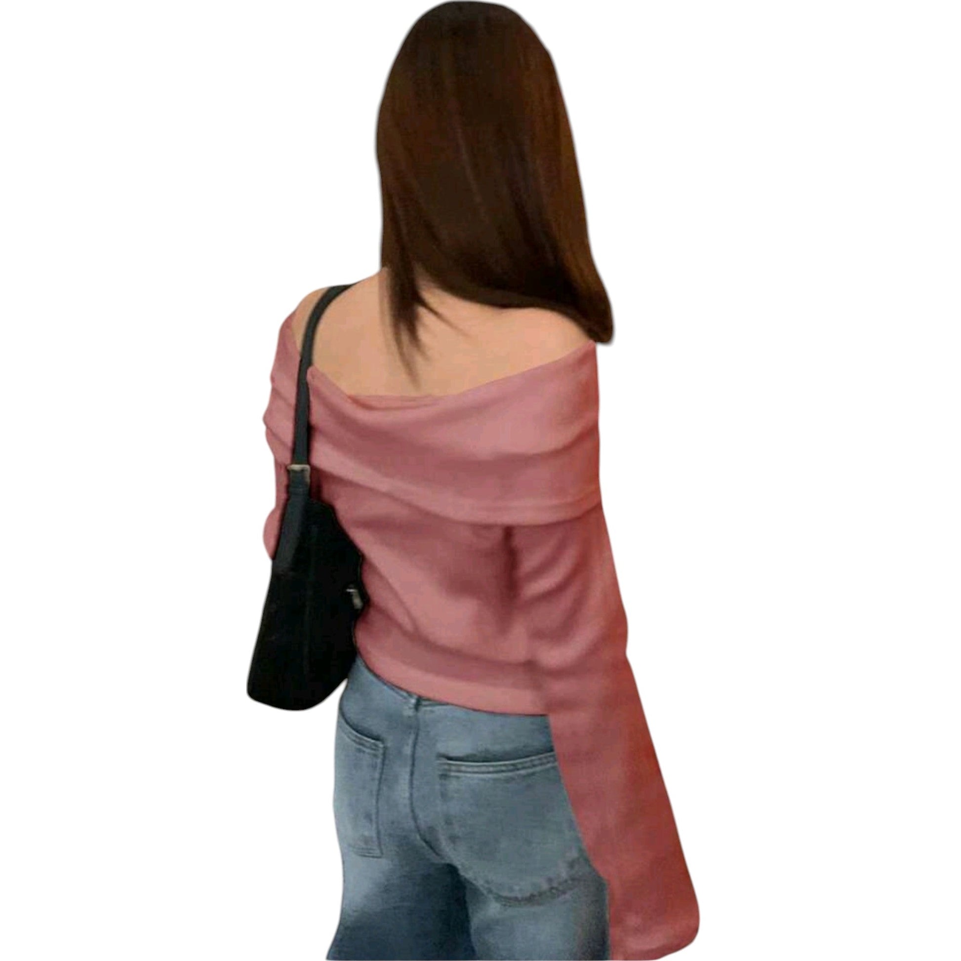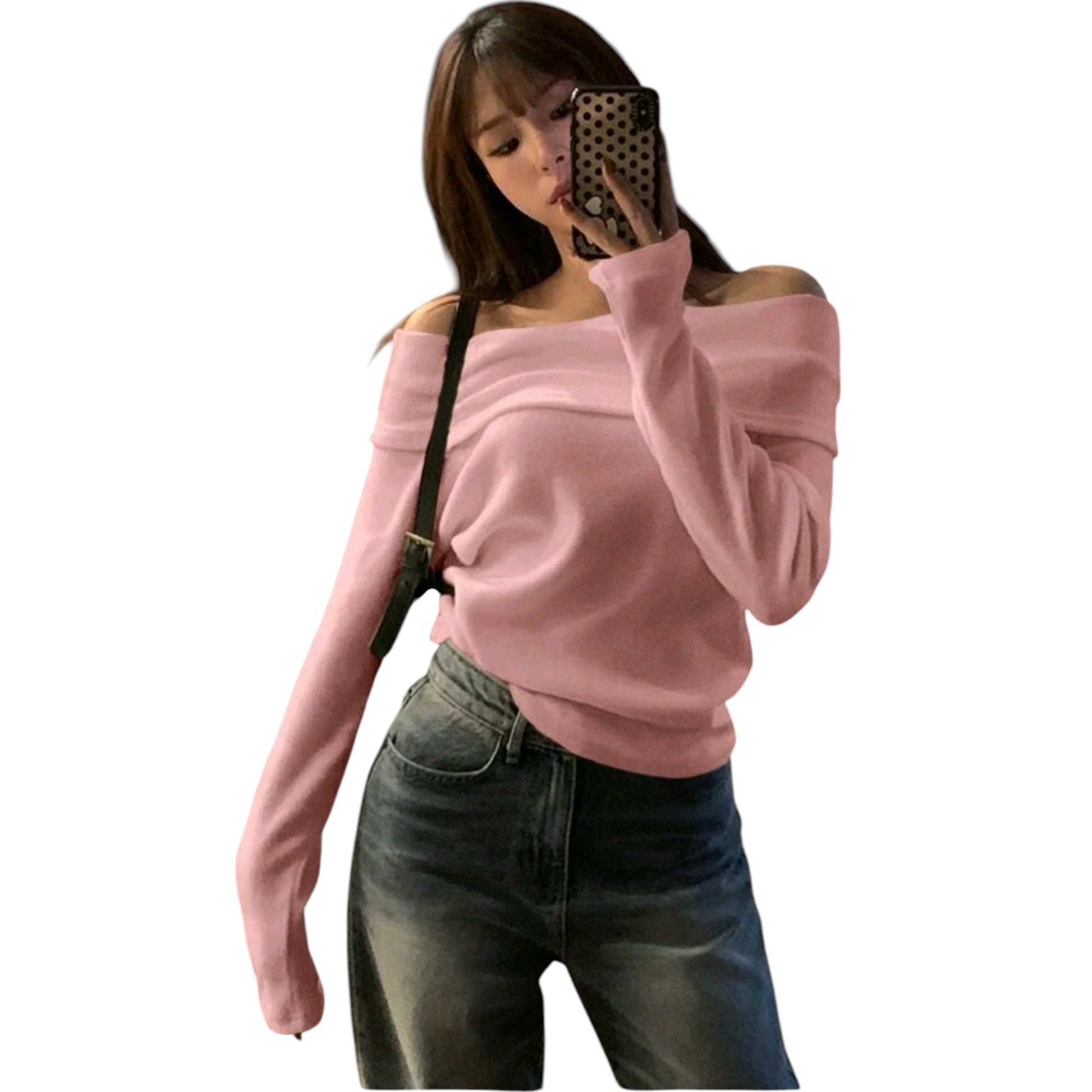Címke nélküli, rózsaszín, ejtett vállú, hosszú ujjú.