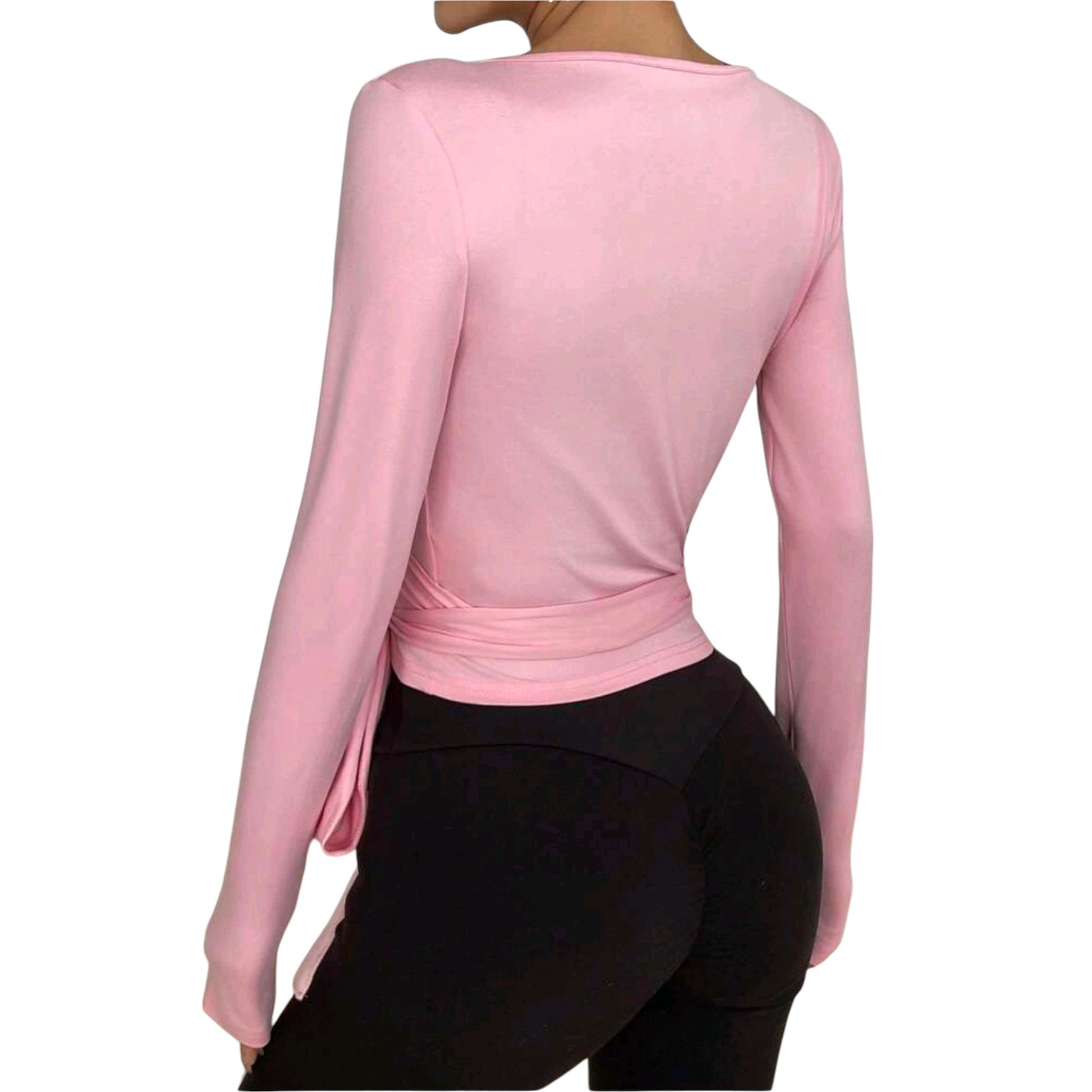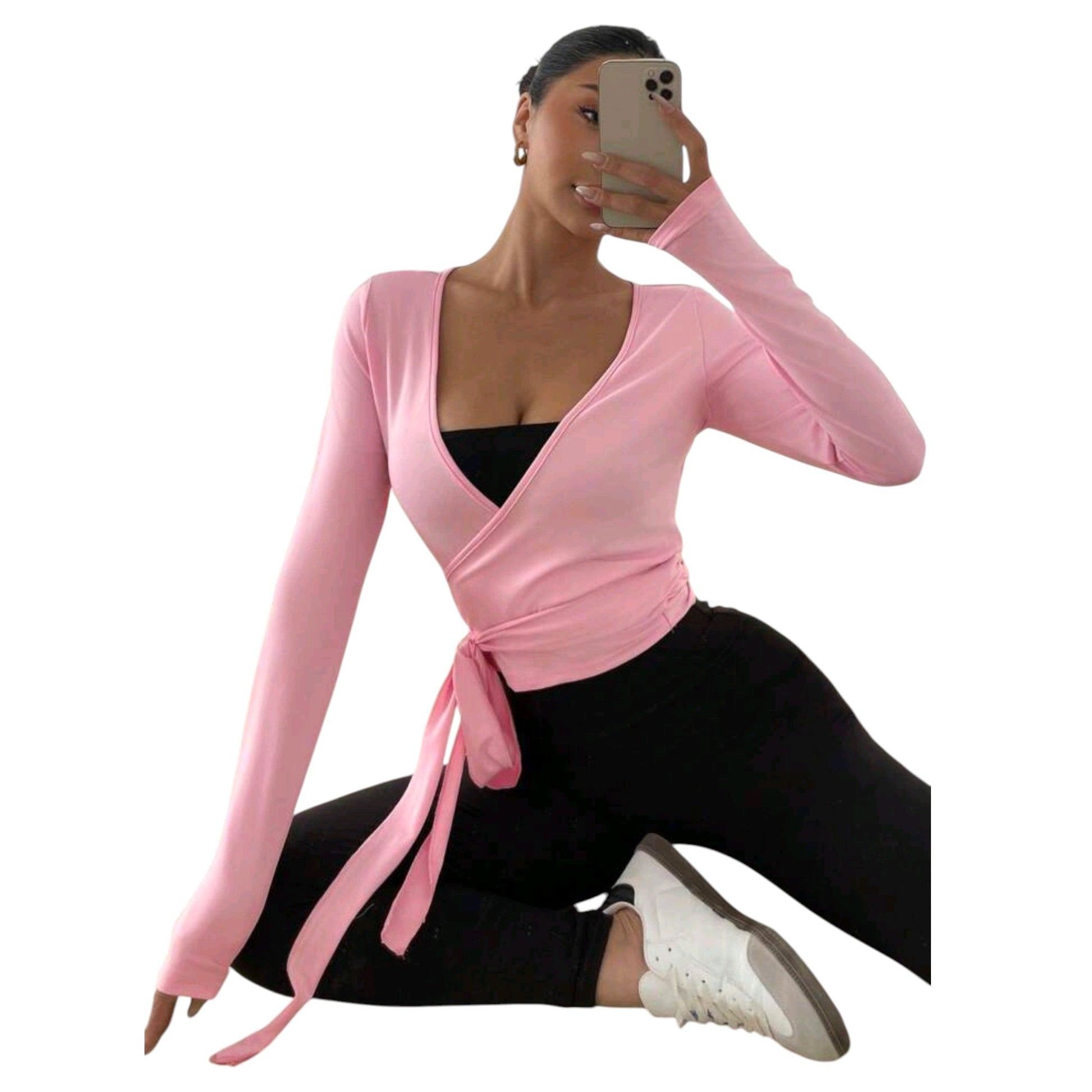 Címke nélküli, rózsaszín, hosszú ujjú, átlapolós, megkötős.