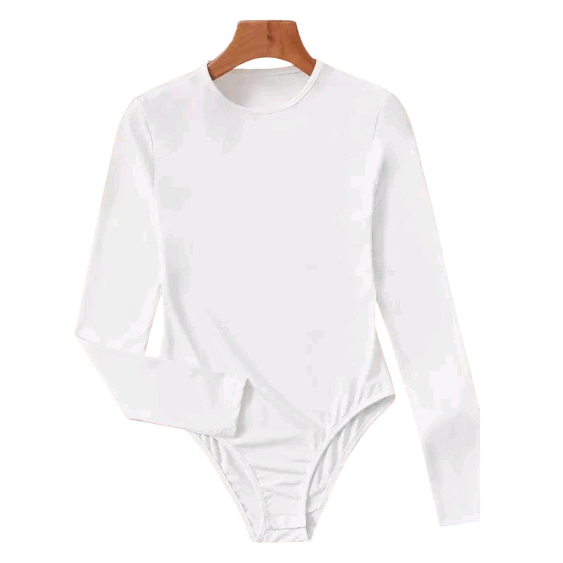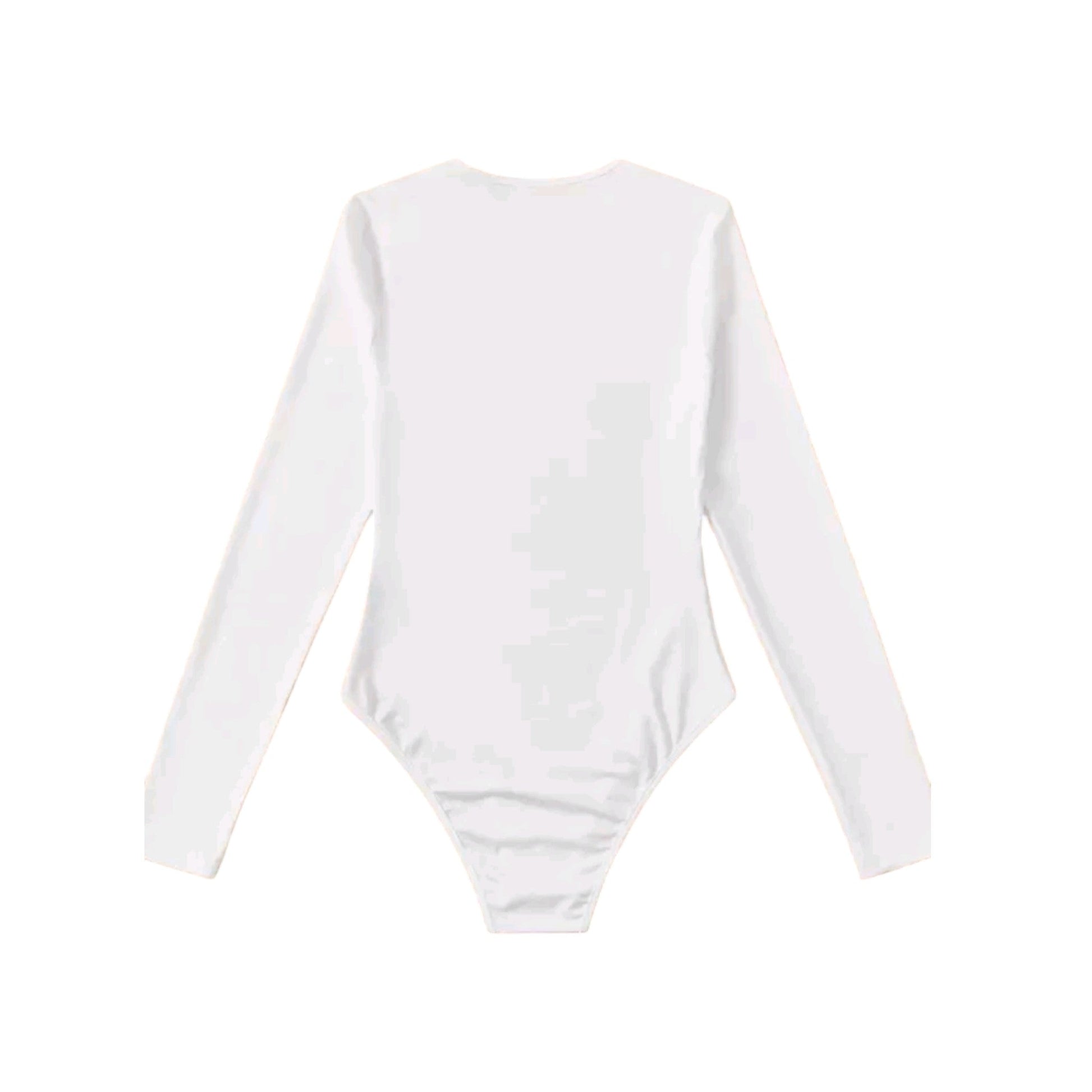 Címke nélküli, fehér, hosszú ujjú, kerek nyakú, testhezálló body.