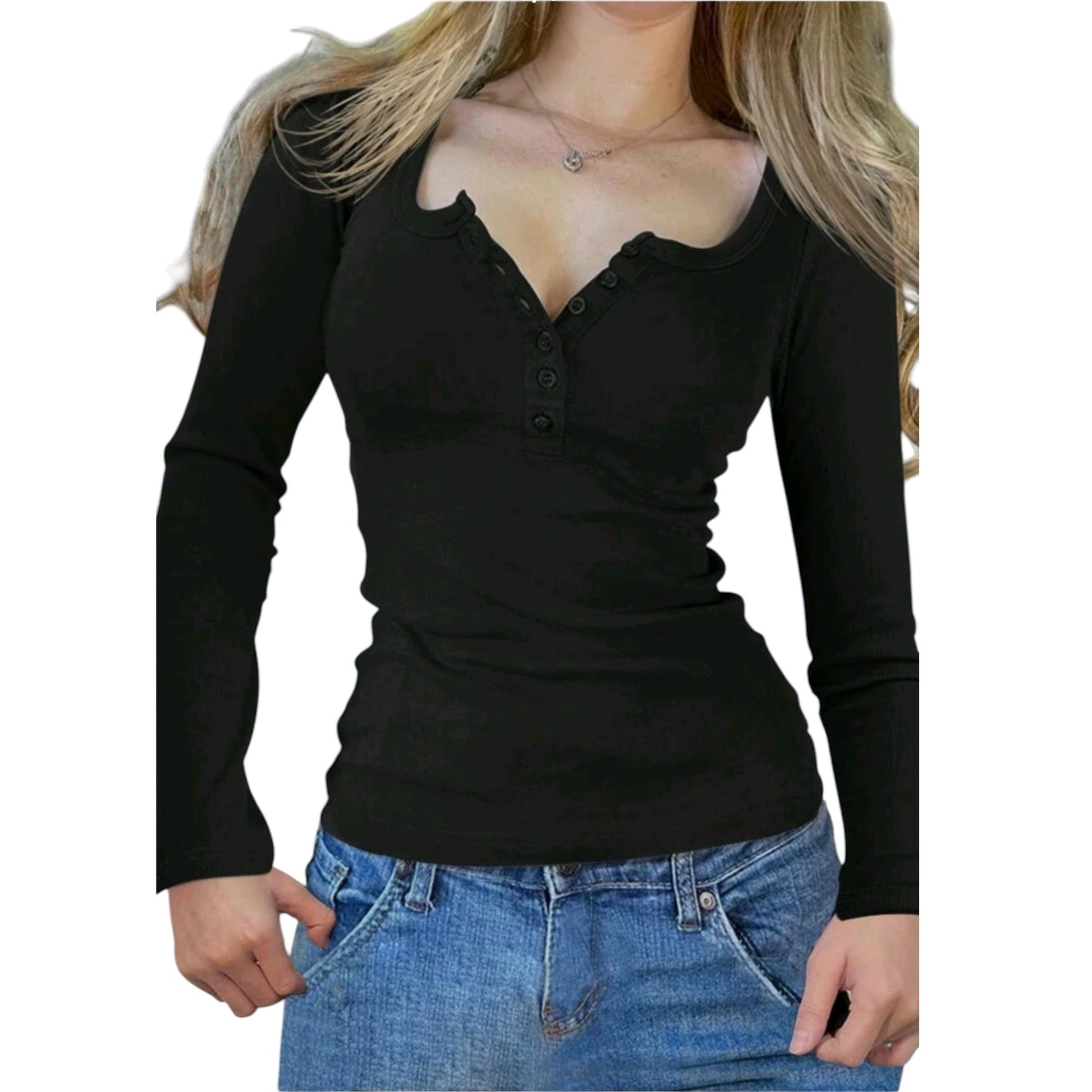 Címke nélküli, fekete, hosszú ujjú, szögletes nyakú, gombos.