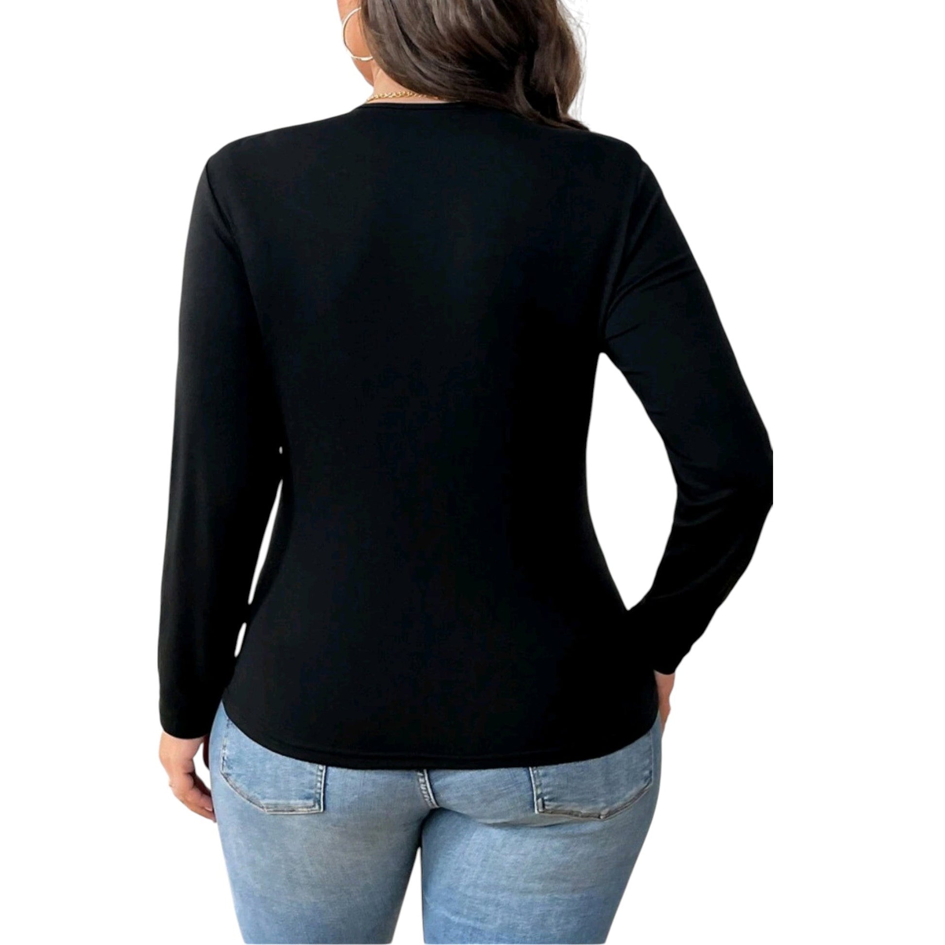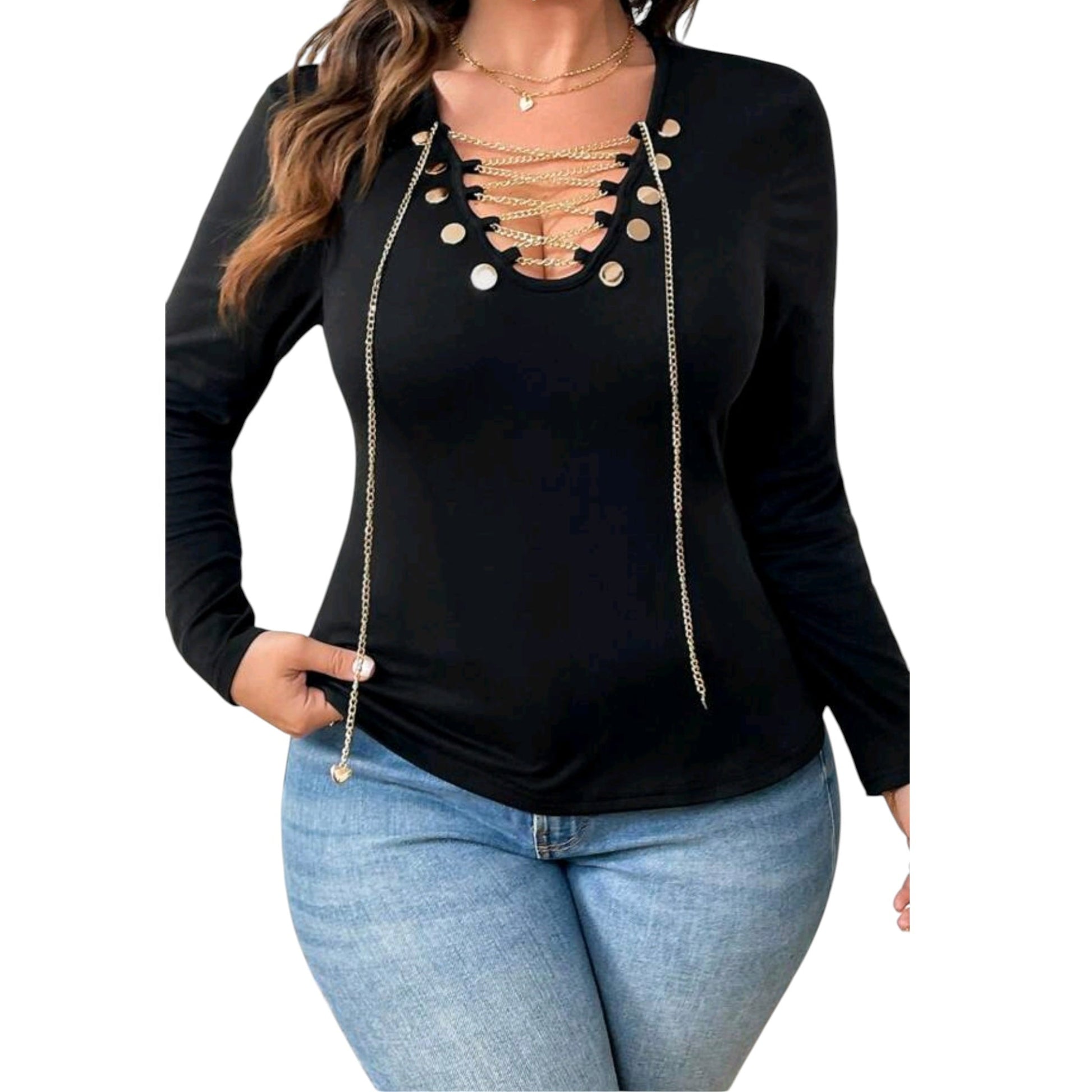 SHE fekete fűzős hosszú ujjú felső