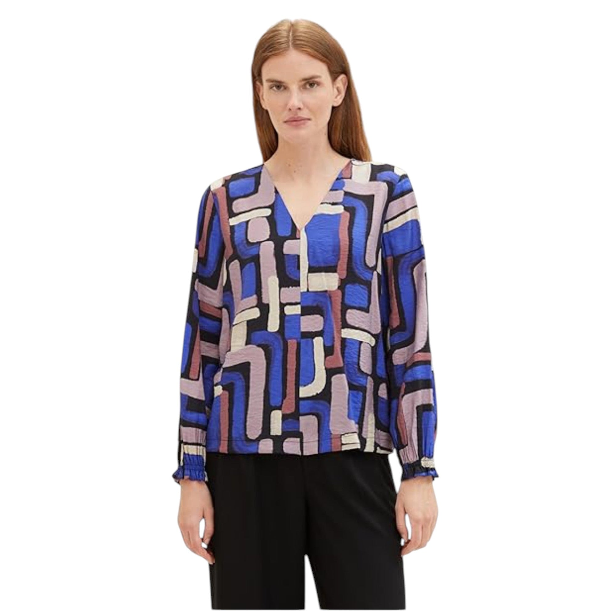 TOM TAILOR kék geometrikus mintás V-nyakú felső