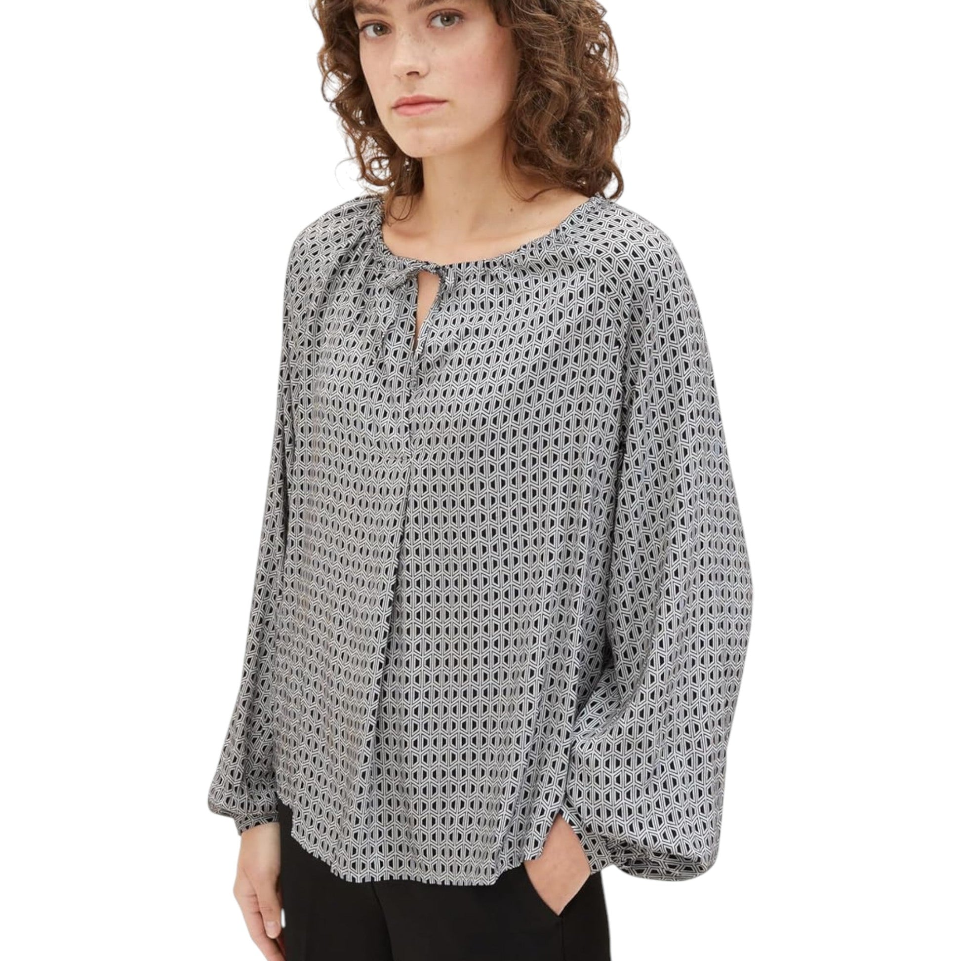 TOM TAILOR fekete fehér mintás hosszú ujjú blúz
