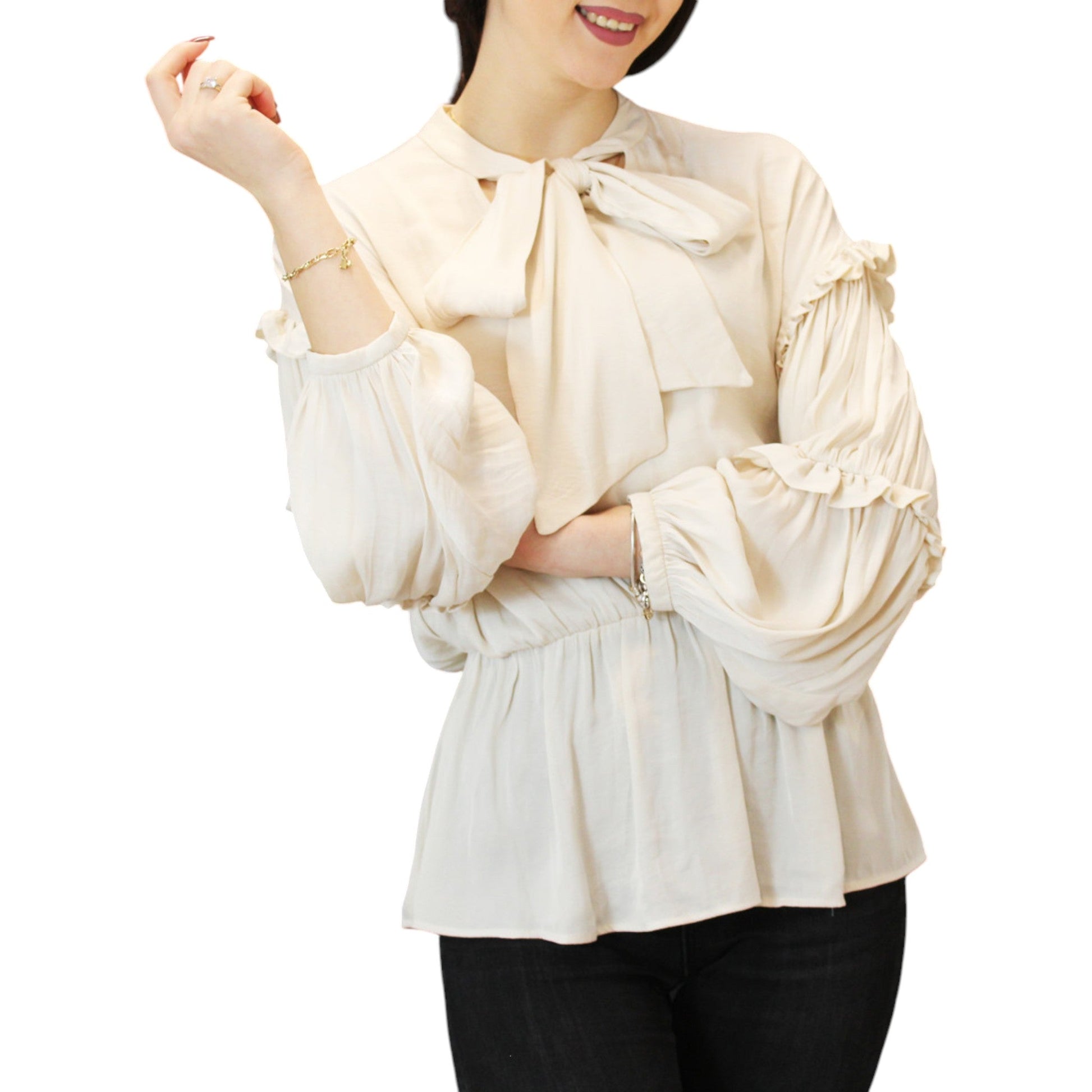 ZARA krémszínű fodros hosszú ujjú peplum blúz