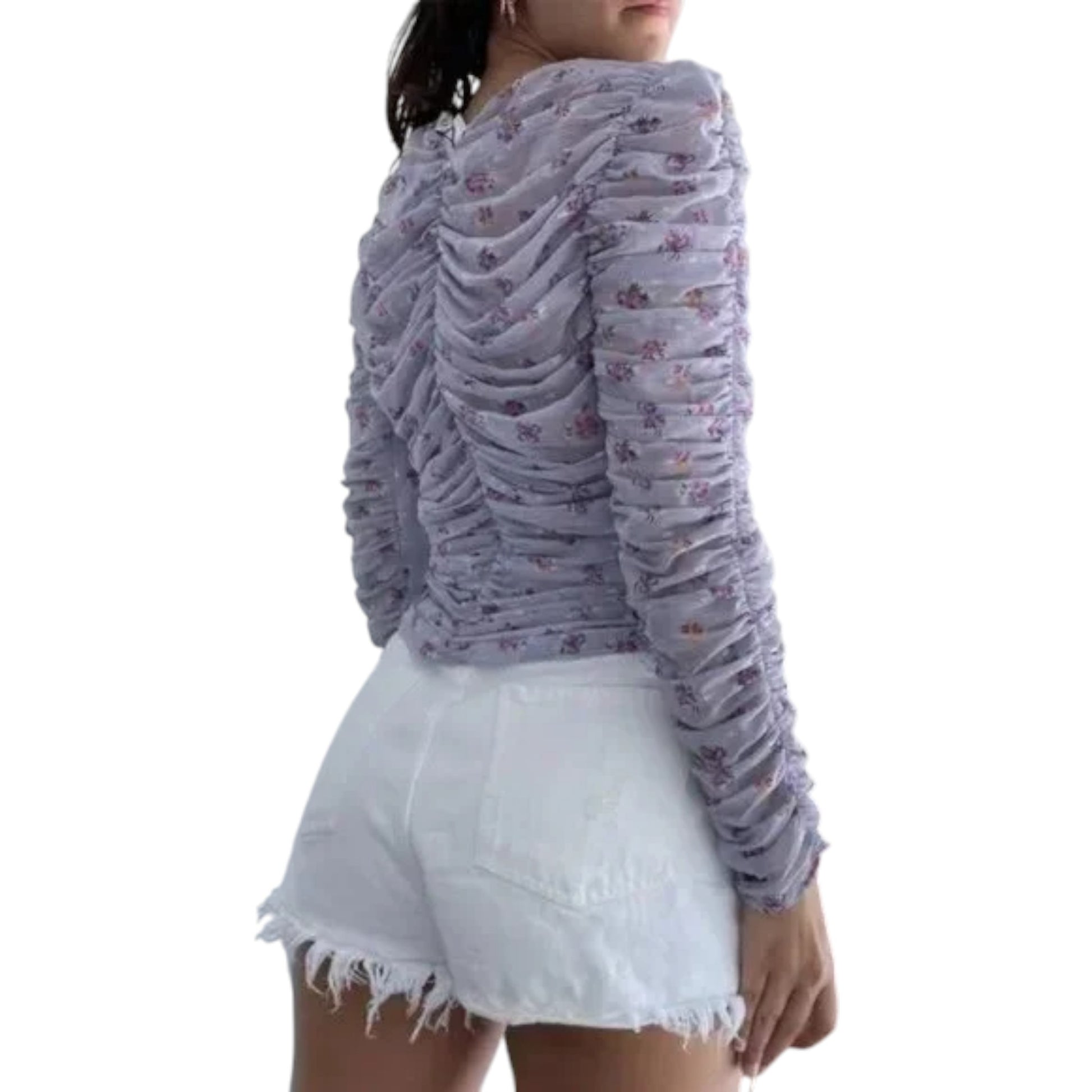 ZARA lila virágos ráncolt hosszú ujjú crop top