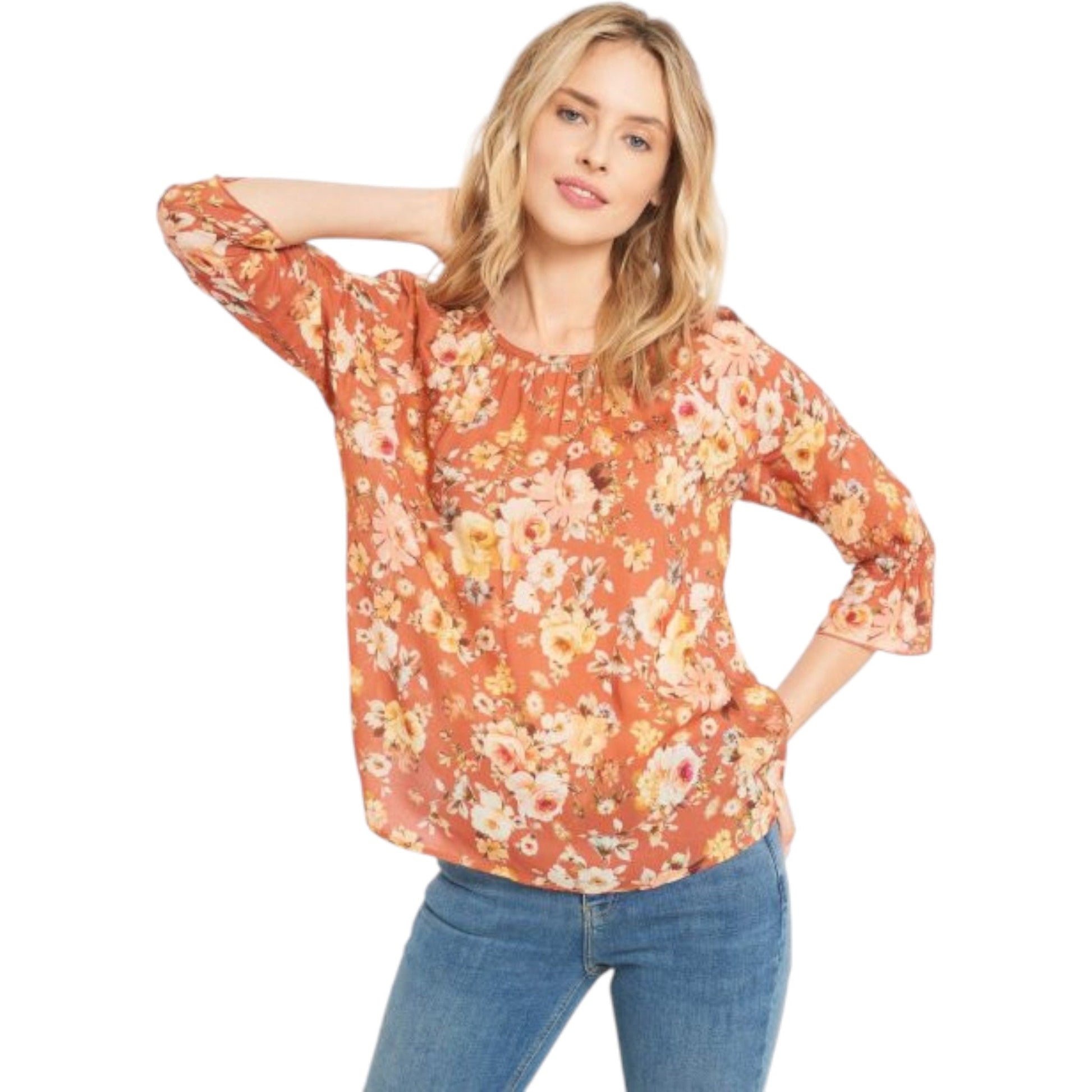ORSAY rozsdabarna virágos 3/4 ujjú blúz