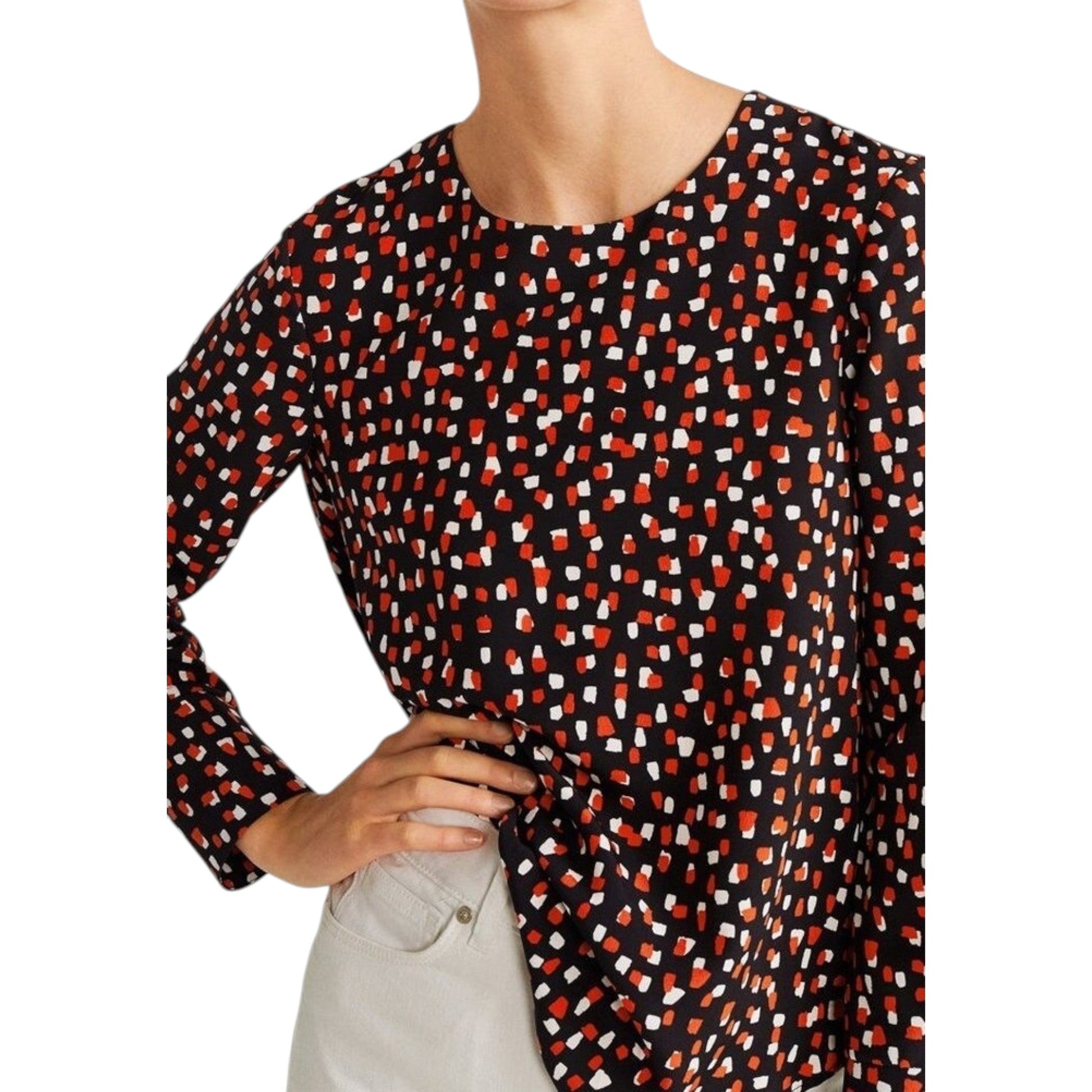 MANGO fekete mintás kerek nyakú hosszú ujjú blúz