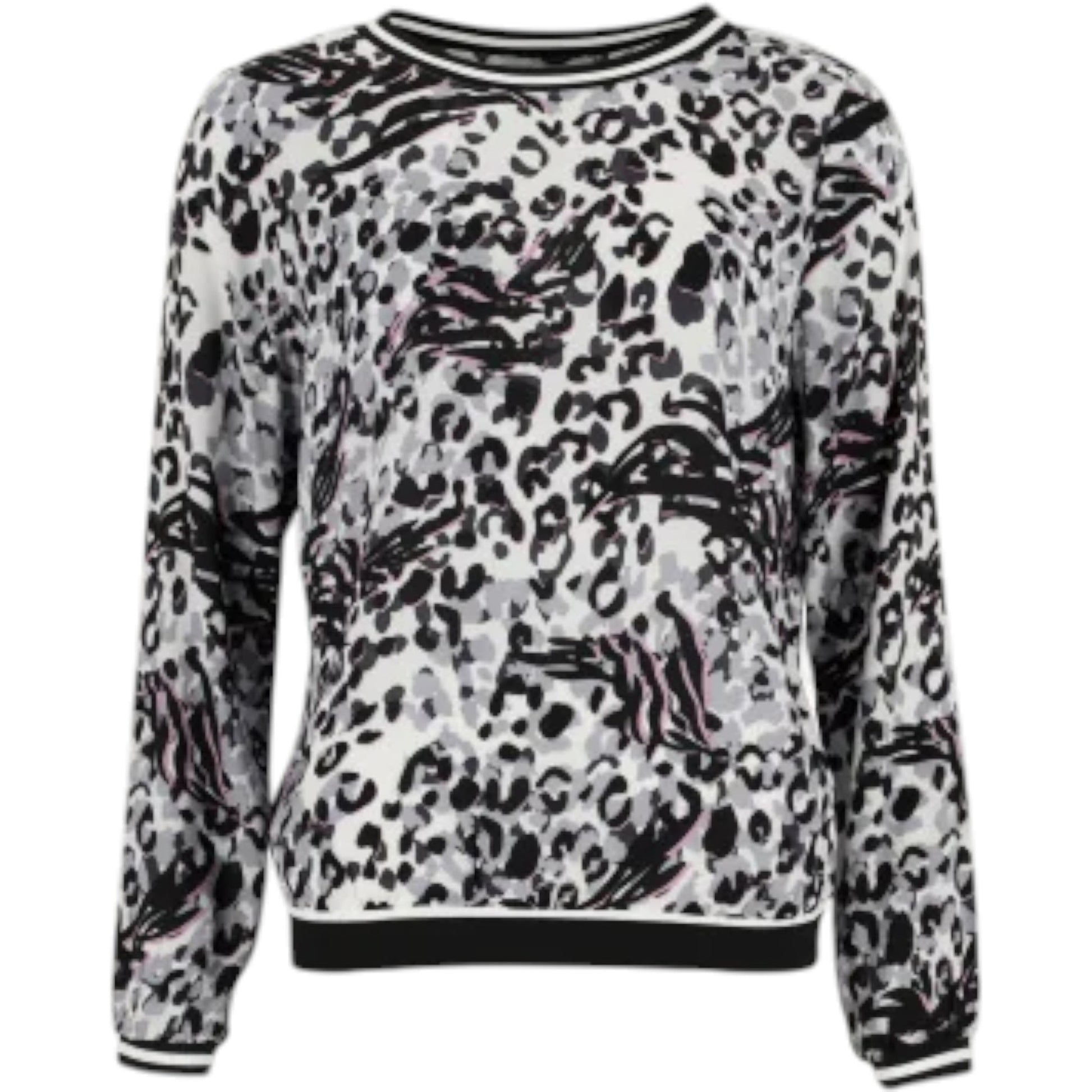 COMMA fehér állatmintás bordás hosszú ujjú pulóver