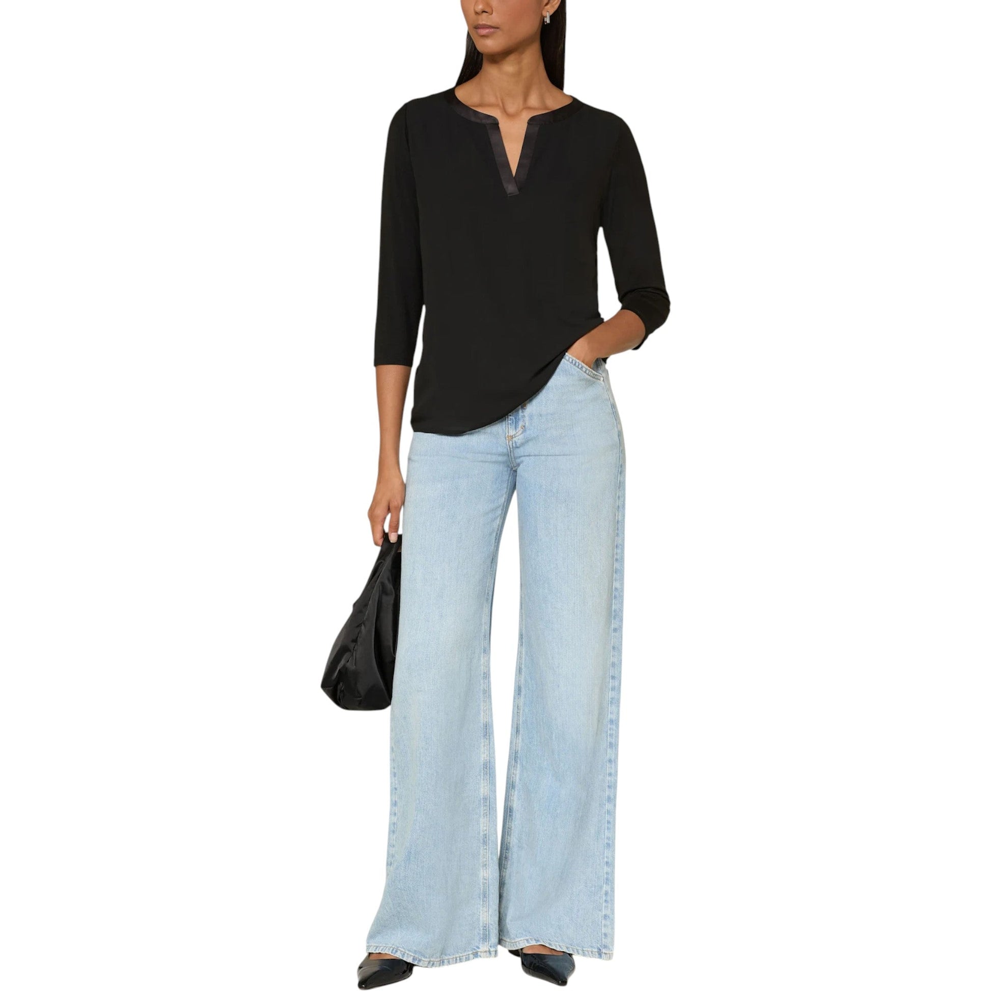 COMMA fekete selyem szegélyű 3/4 ujjú tunika