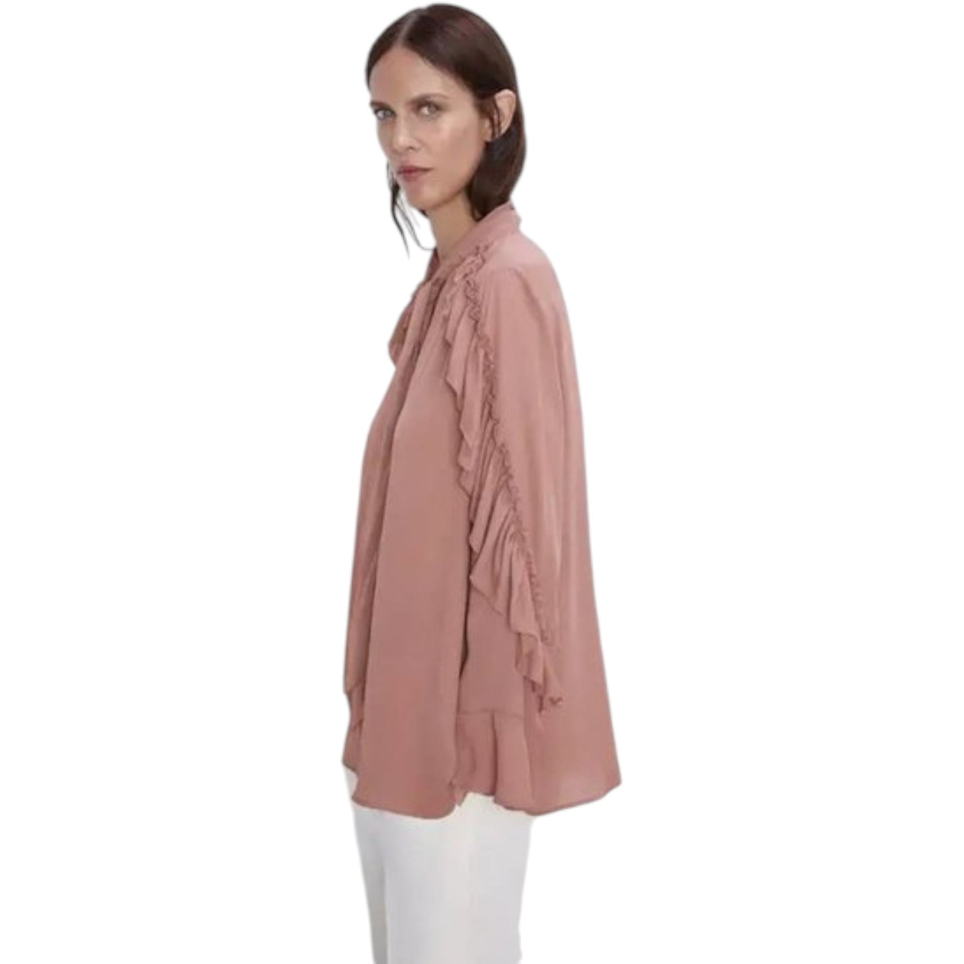 ZARA barnás-rózsaszín masnis fodros hosszú ujjú blúz
