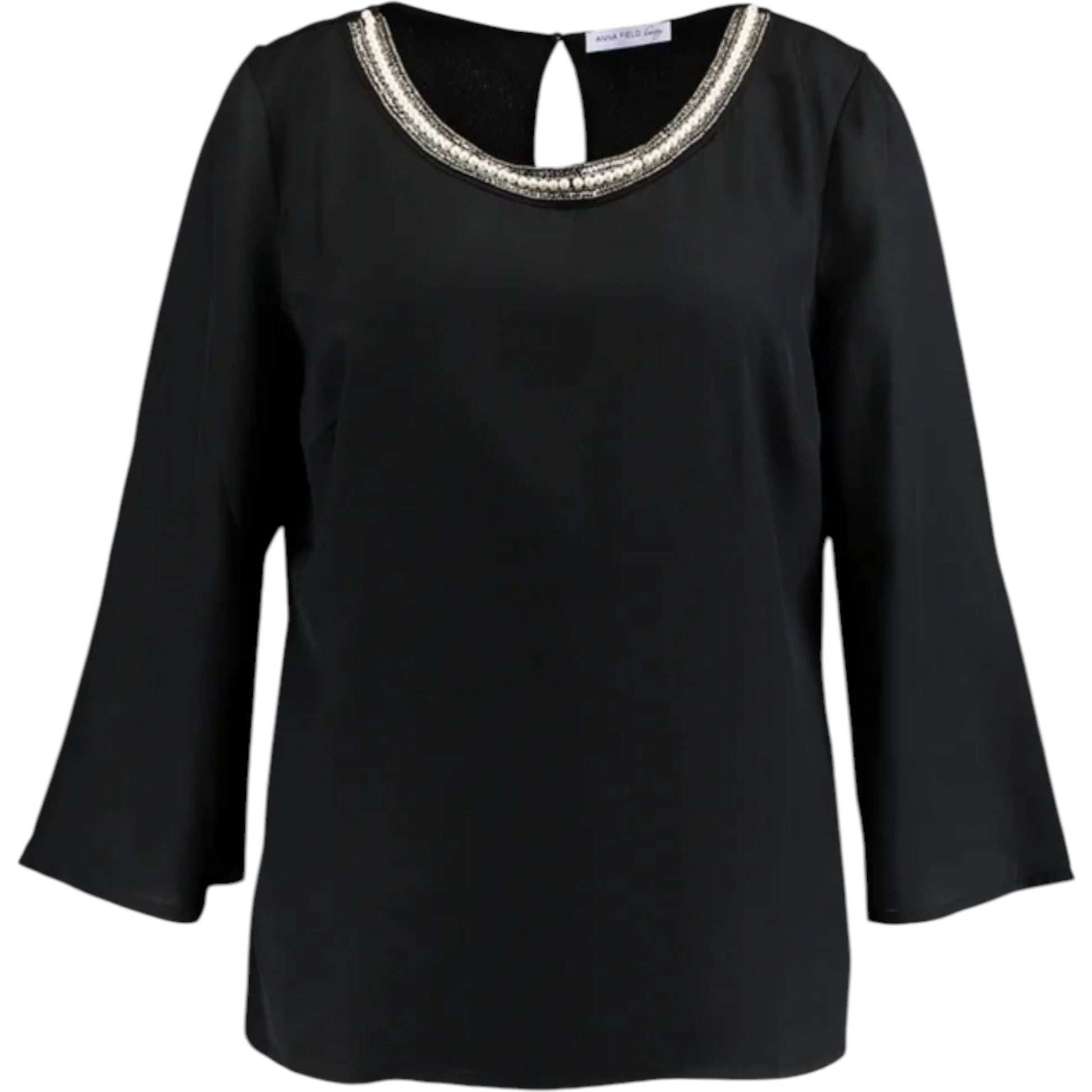 ANNA FIELD fekete gyöngyös kerek nyakú blúz
