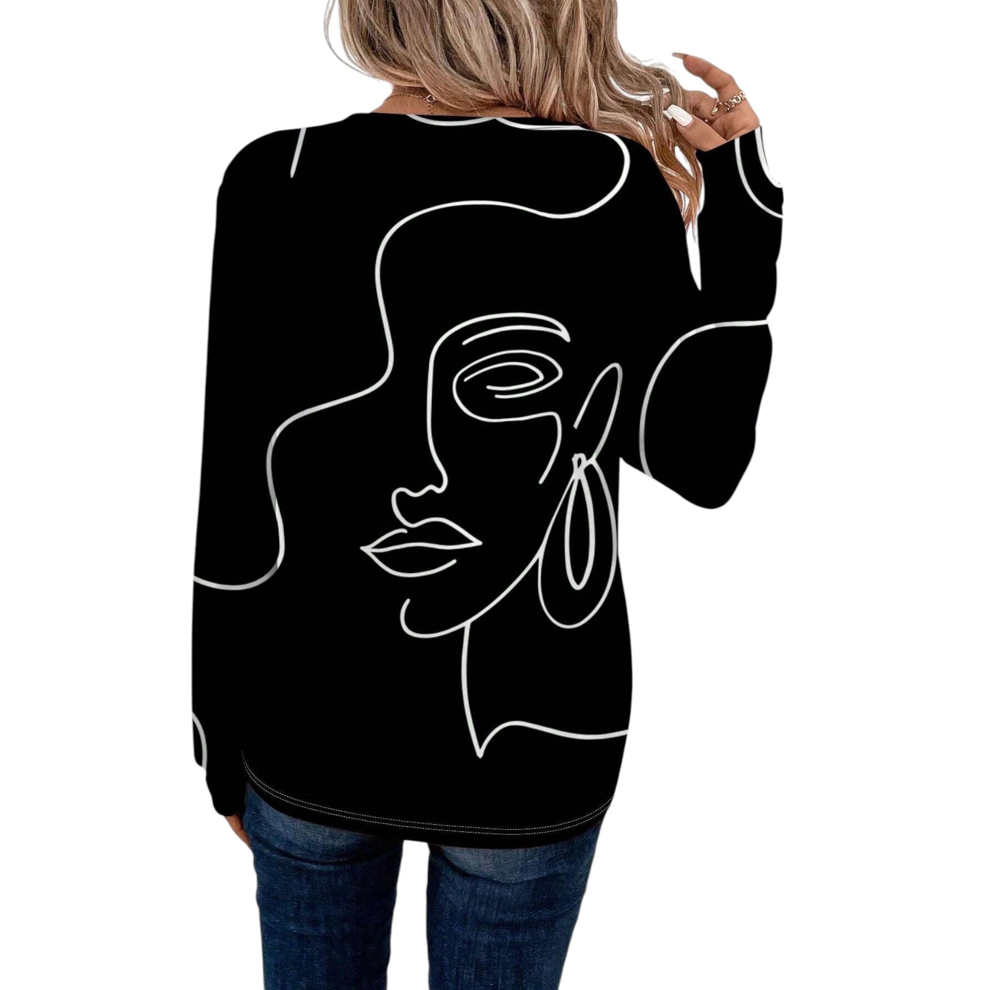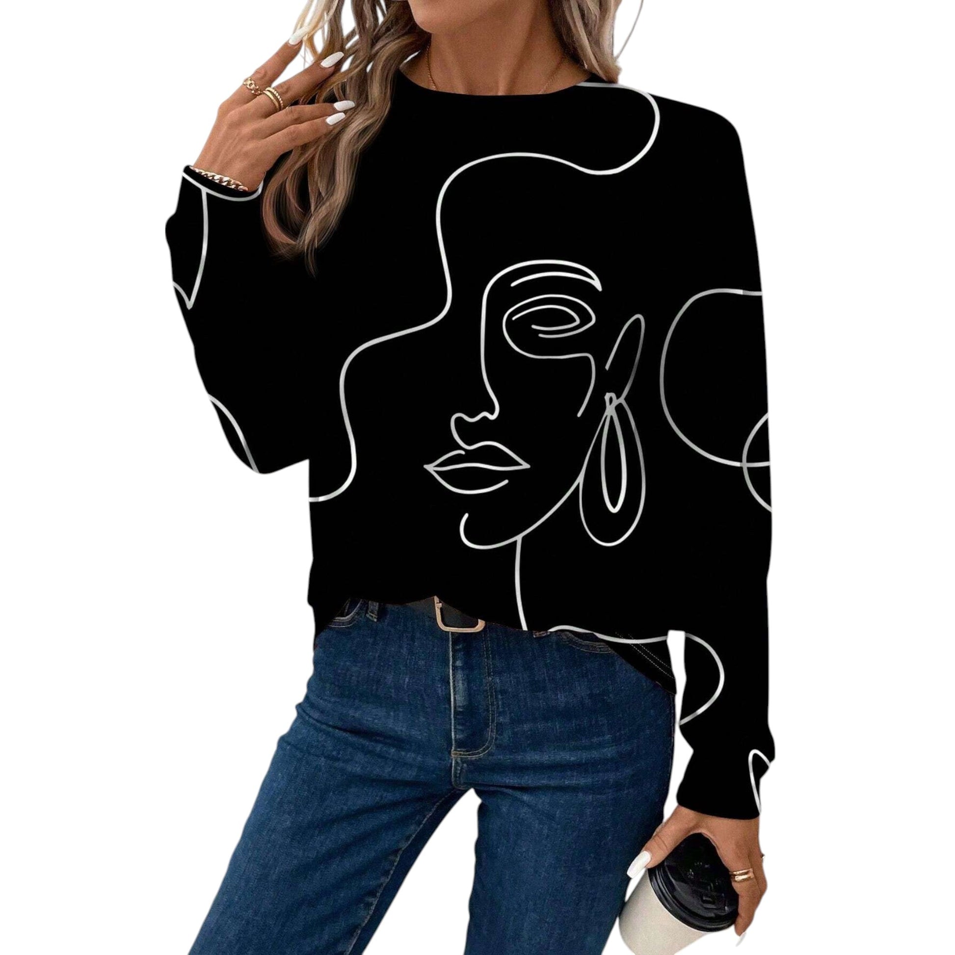 Címke nélküli, fekete, kerek nyakú, hosszú ujjú, absztrakt arc mintás.