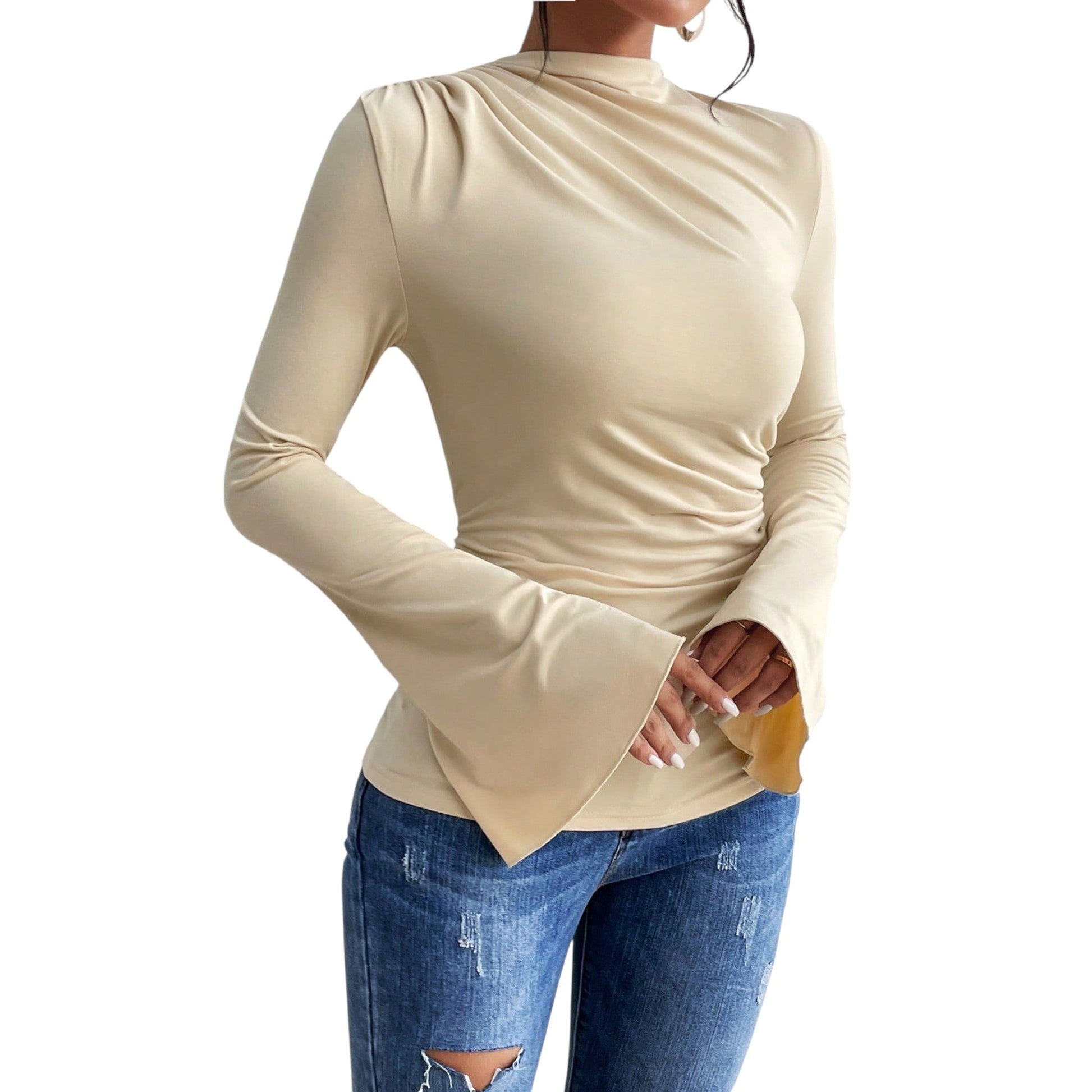SHE bézs hosszú ujjú szűkített felső