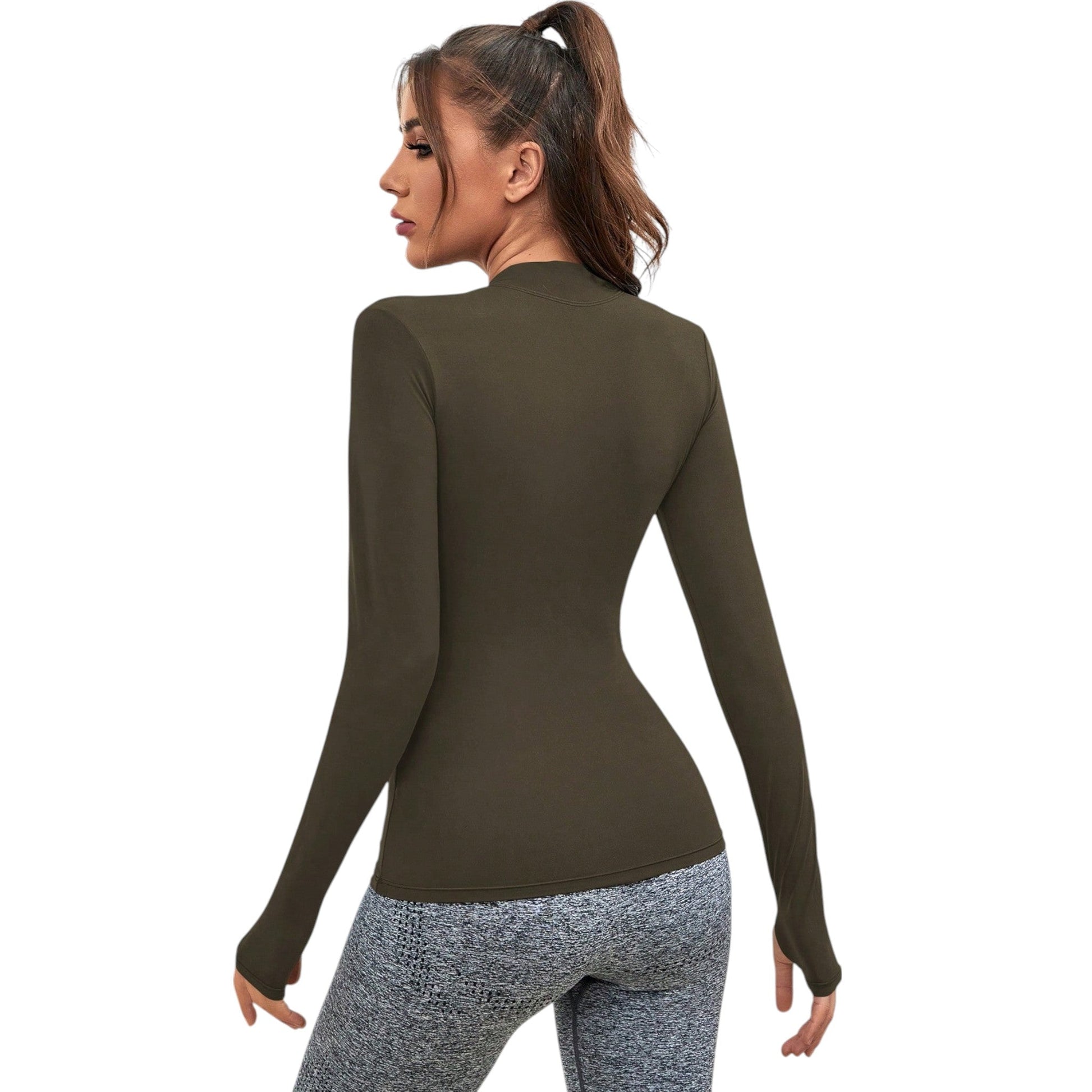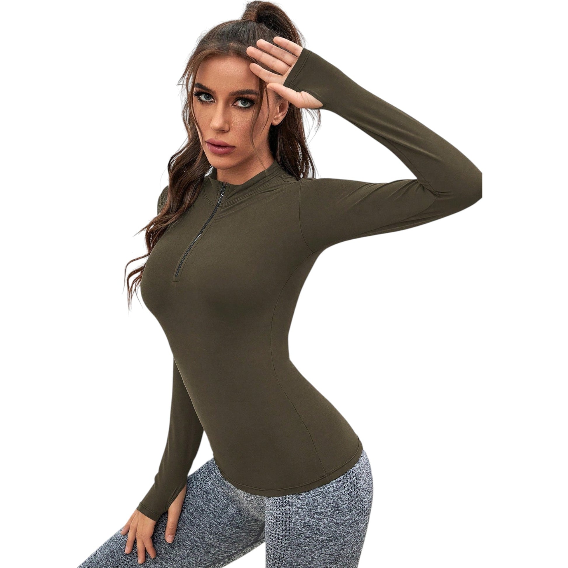 Címke nélküli, olívazöld színű, hosszú ujjú felső. Álló galléros, rövid cipzárral záródik. Hüvelykujj bújtatóval ellátott.