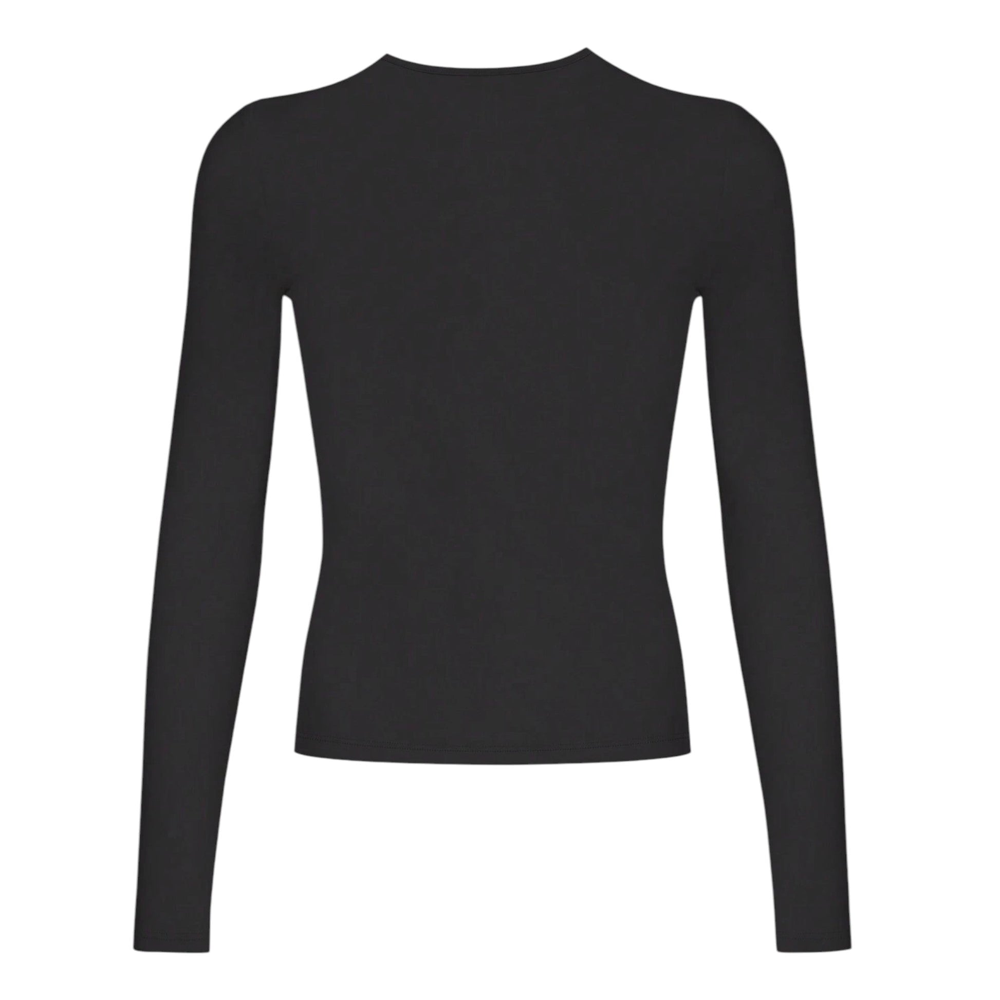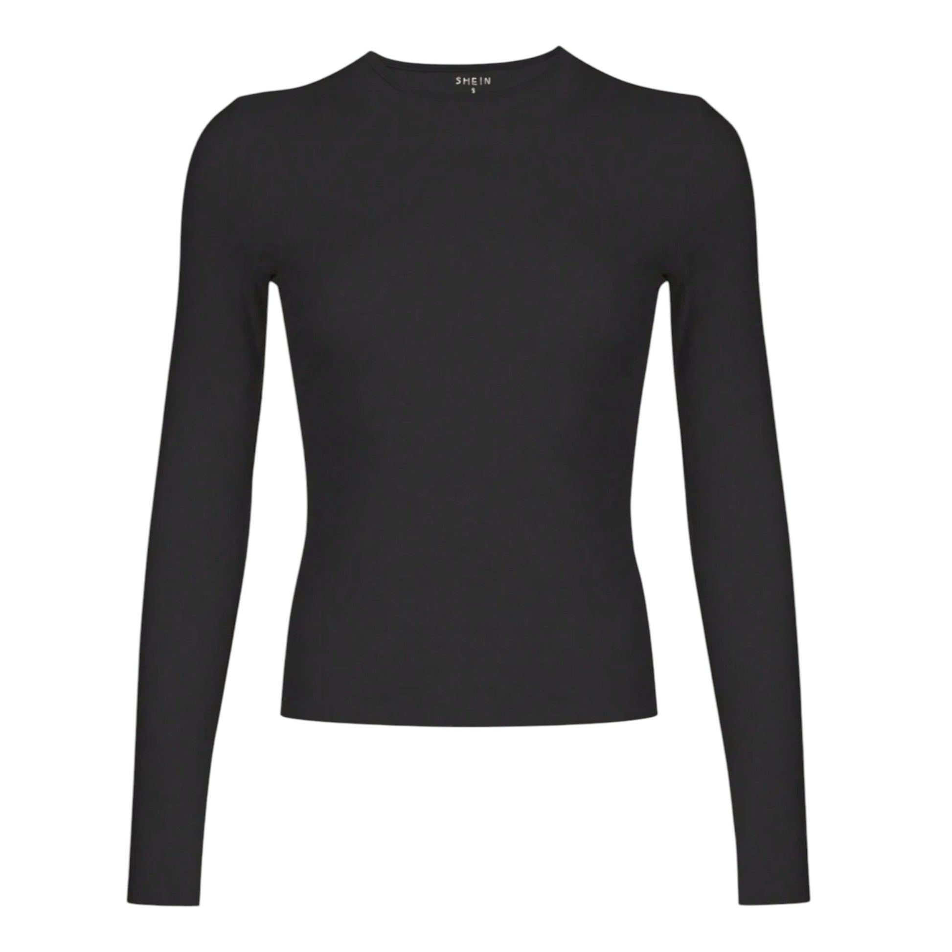 Címke nélküli, fekete, kerek nyakú, hosszú ujjú, slim fit póló.