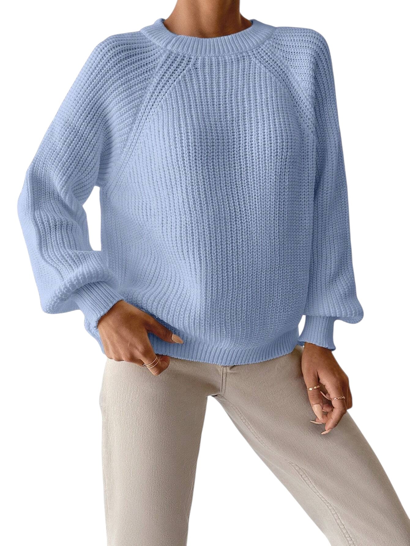 Címke nélküli, világoskék, kerek nyakú, hosszú raglán ujjú, kötött pulóver