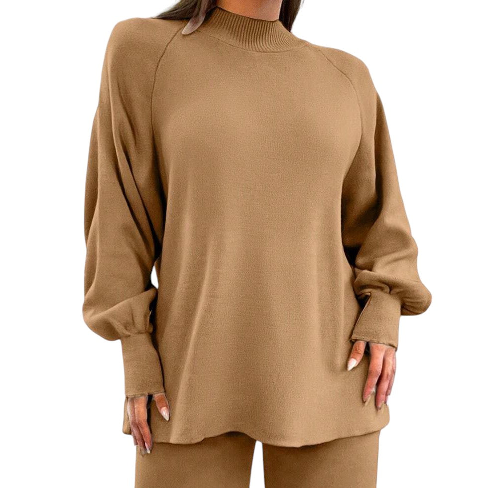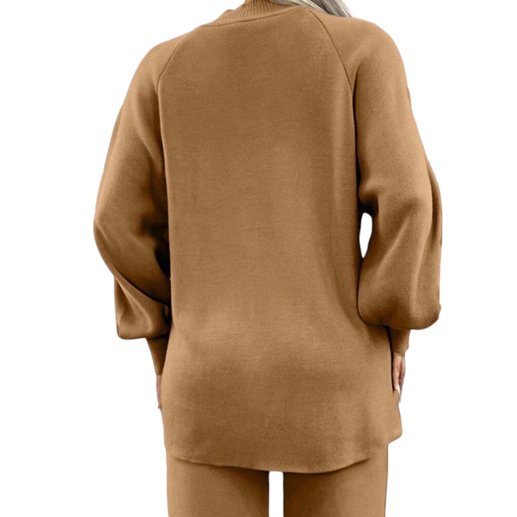 Címke nélküli, barna, magas nyakú, hosszú, denevérujjú kötött pulóver