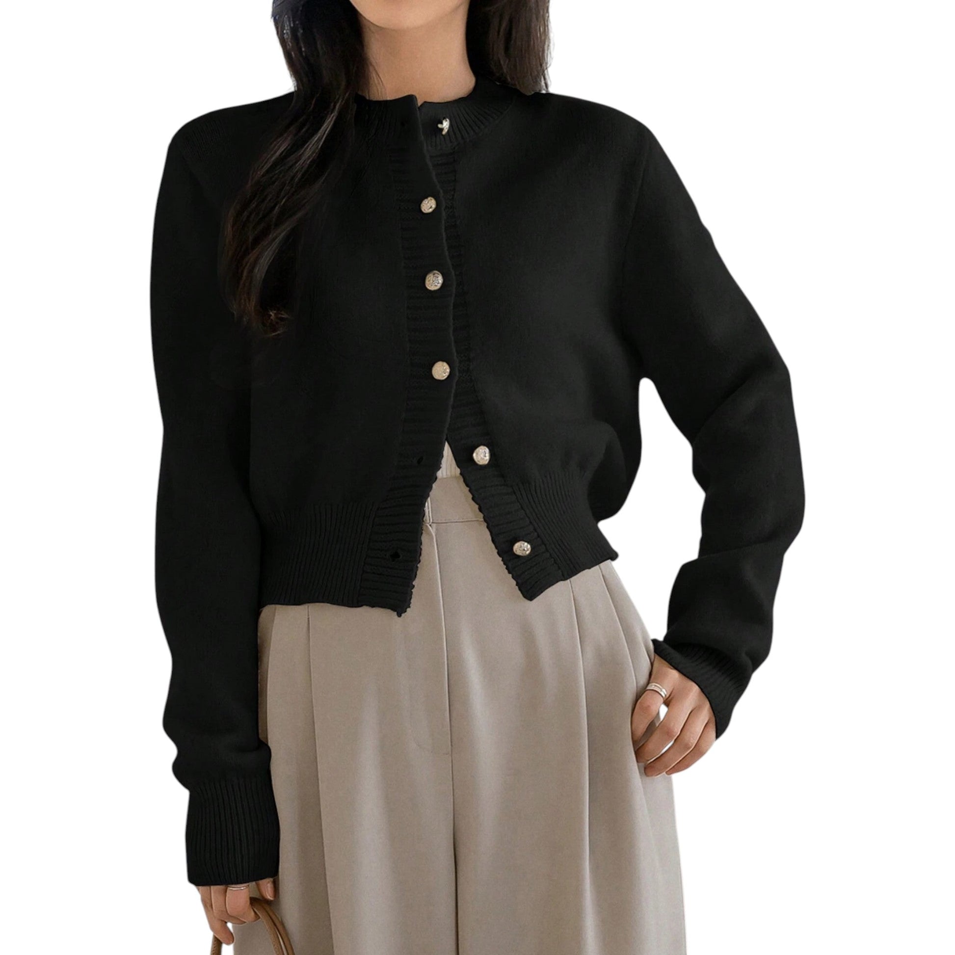 Címke nélküli, fekete színű, gombos kardigán. Klasszikus és sokoldalú darab a ruhatárban.
