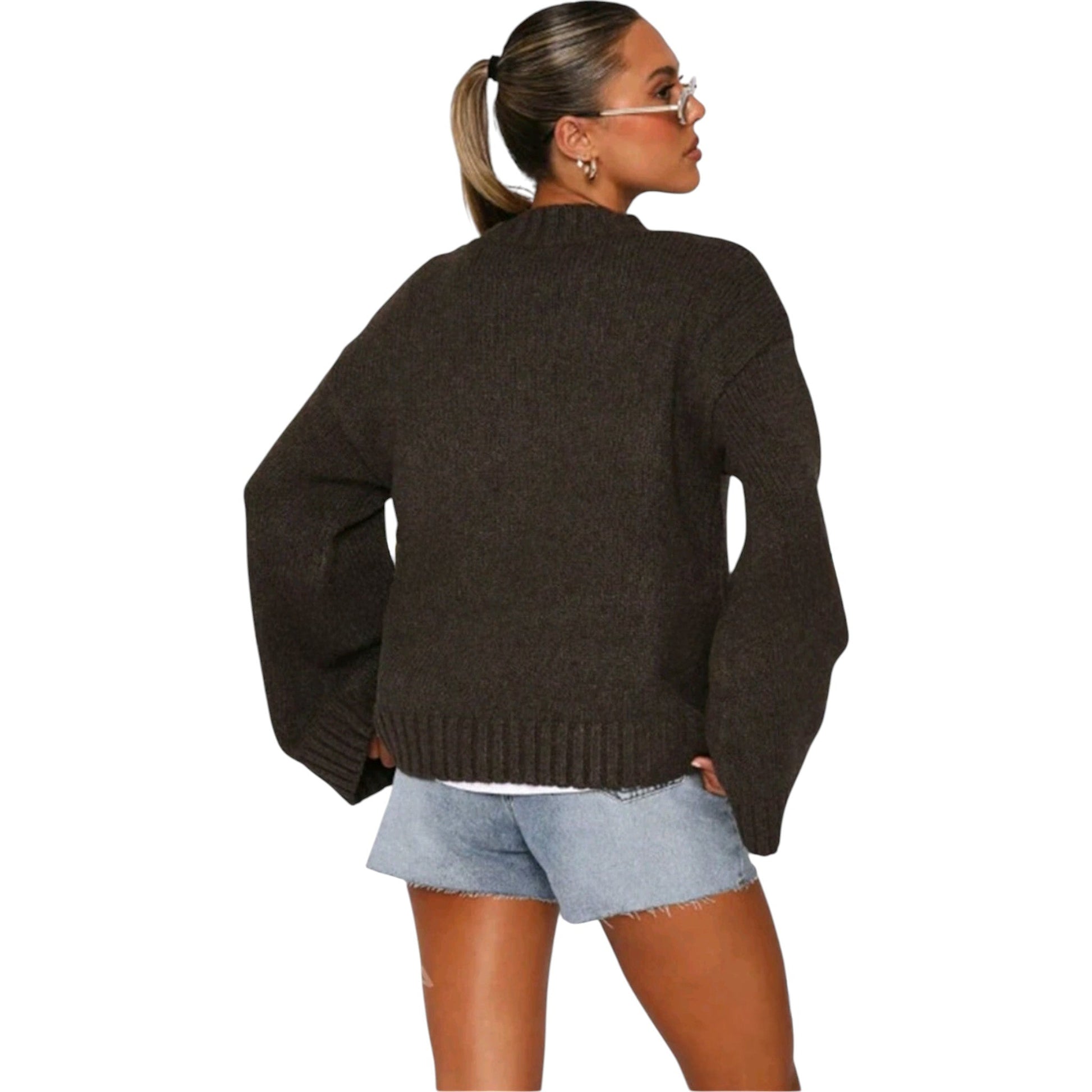 Címke nélküli, barna, garbós, hosszú ujjú, bő ujjú, kötött