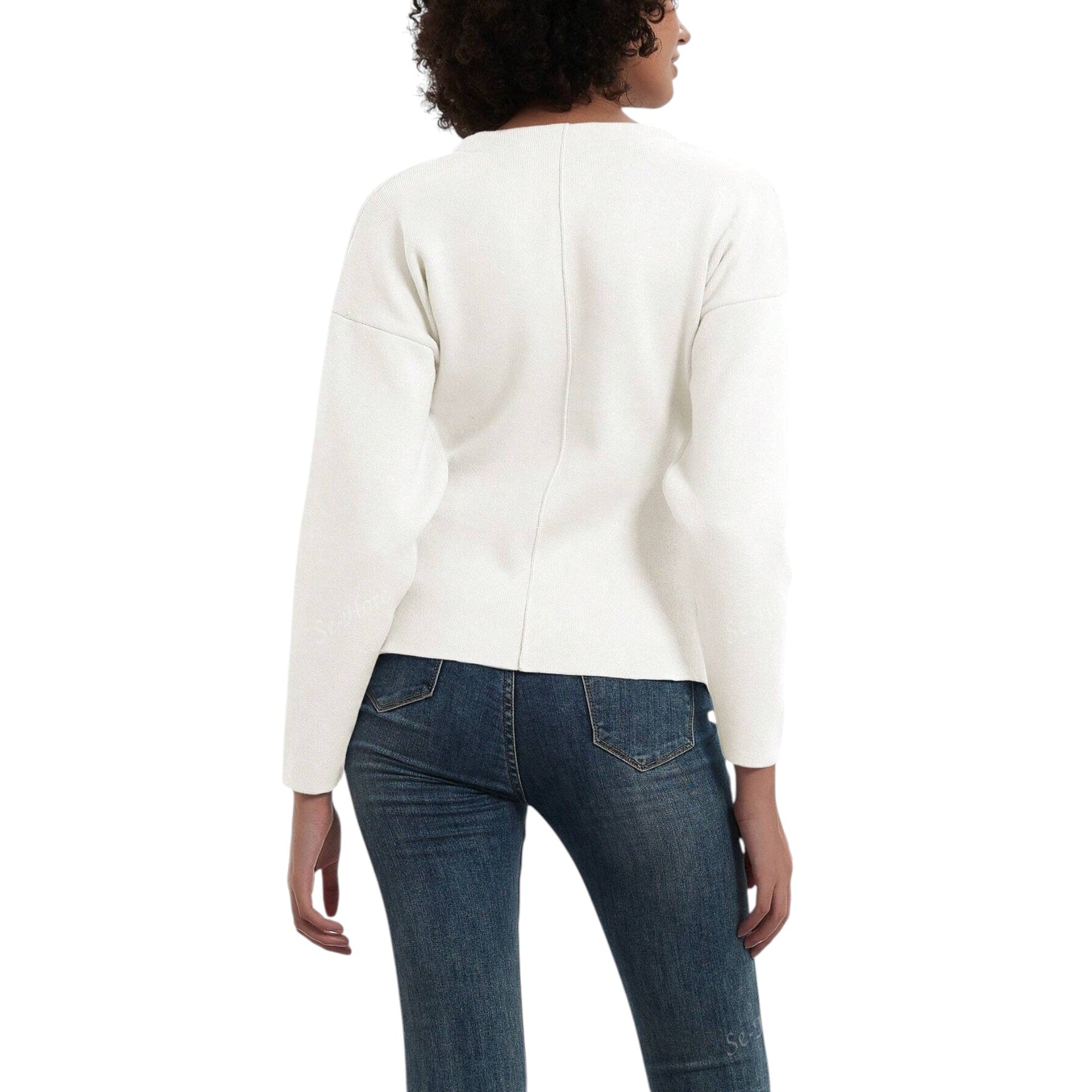 Címke nélküli, fehér, V-nyakú, hosszú ujjú kardigán.